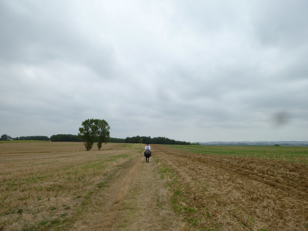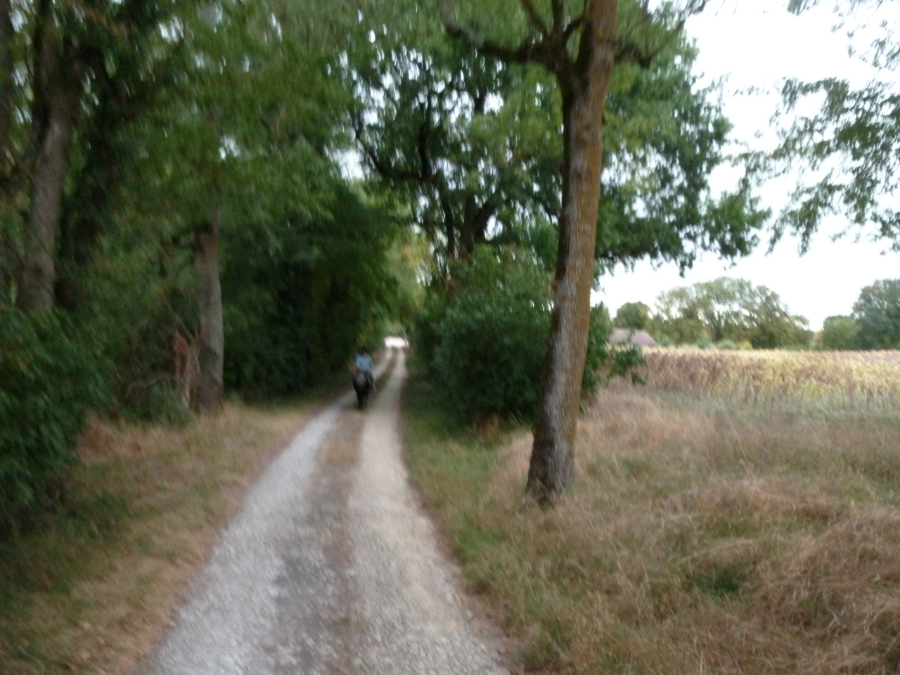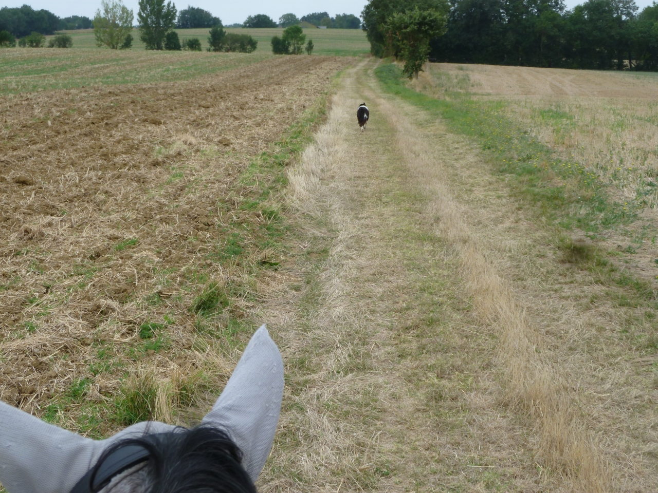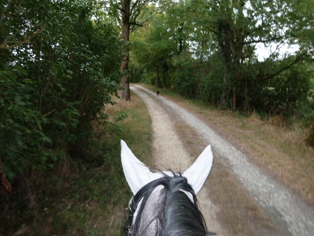 | Dire merci | Allez, on se motive, hop hop hop, au boulot les tonneaux S. étant partante pour une balade ce matin (elle vit "à l'heure espagnole", et normalement elle ne se réveille pas avant 11h donc c'est qu'elle était motivée +++ ) on a pris les deux mêmes et on a recommencé ![]() Chose inespérée quand elle est arrivée, Valencia accepte Flip lors des balades sans problème maintenant . Il est vrai que, l'autre jour (avec P.), elle a failli le mettre en orbite par un sabot postérieur qui a sifflé au-dessus de son oreille lorsqu'il est apparu soudainement sans bruit depuis les bois mais de manière générale, ça se passe très bien maintenant. Puis suite à cet incident, Flip aussi a compris qu'il vaut mieux être devant Valencia que derrière ![]() Pour la première fois avec S. nous sommes arrivées à sortir du domaine ! Victoire Becky s'est quand même arrêtée plusieurs fois, mais S. a su la remettre en route chaque fois ![]() ![]() ça c'est la partie du chemin juste après la petite route (où on a croisé DEUX voitures aujourd'hui du jamais vu ! ça devait être l'heure de pointe ) ![]() Qui c'est qui a cédé à la tentation d'un petit galop bien agréable, ma foi ? Et qui c'est qui a décidé qu'il faisait déjà un peu chaud ne serait-ce que pour trotter ?! Bref, Becky nous a rattrapé un peu plus tard, au pas Attention Valencia, Border Collie à l'horizon... ![]() Ah, mais c'est Flipouuuuuuu ![]() Nous sommes bien entourées, Flip devant et Becky derrière loin, loiiiiiin derrière ![]() Après ce chemin nous sommes rentrées de nouveau au domaine et on a fait un dernier galop (pour Valencia et moi) ou un premier galop (pour S. et Becky) et ça s'est très bien passé, S. a repris confiance dans la petite bête noire Et voilà pour aujourd'hui... |