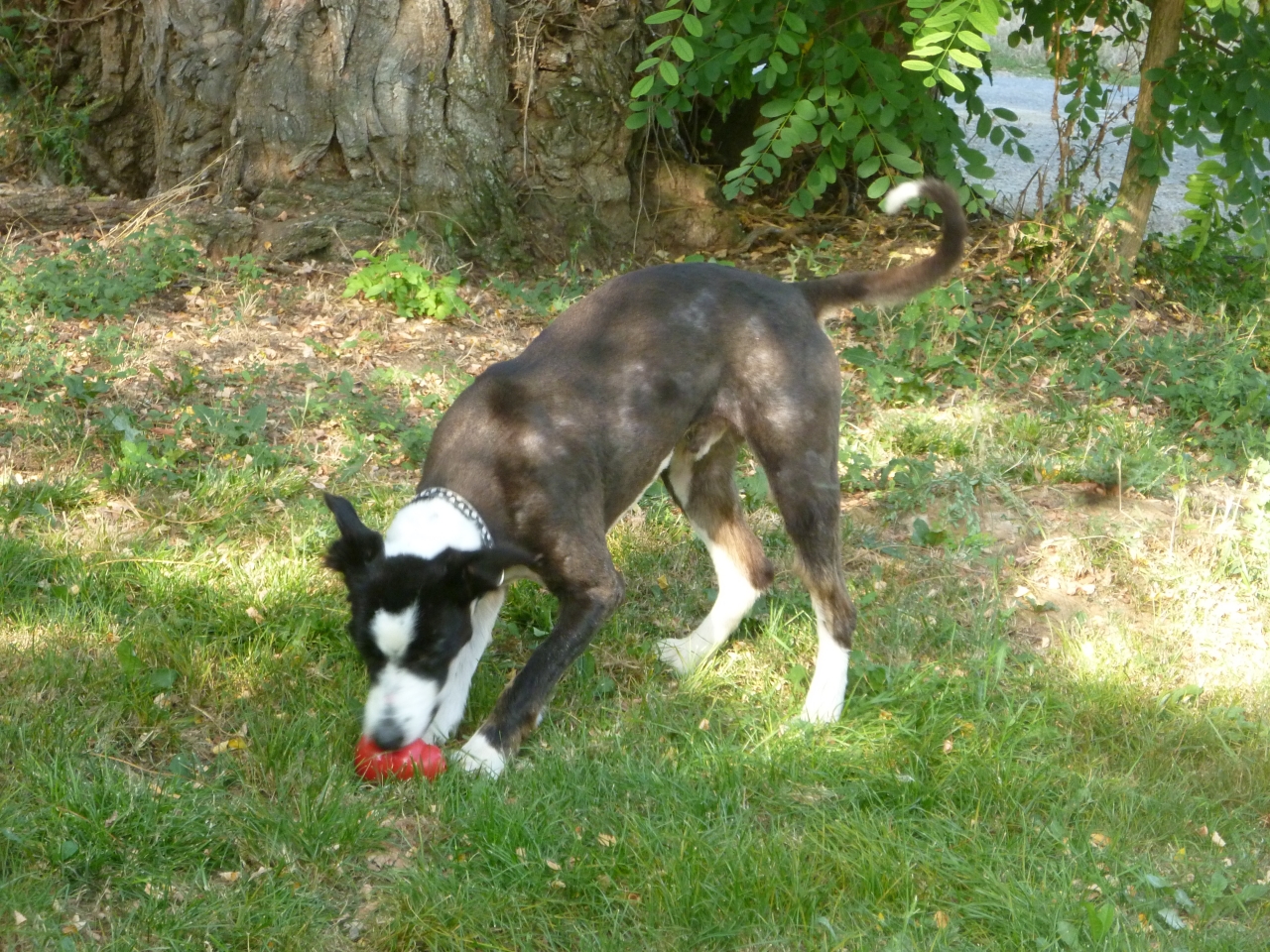 | Dire merci | exor : comme tu dis ![]() irisetquiara39 : interdit de canapé et de chambre ; il a son tapis à lui, nonmého La seule légère entorse à cette règle c'est quand il y a orage ou journée de chasse, car là il tremble de peur donc il se glisse silencieusement dans la chambre et se couche sur le tapis, ni vu ni connu ![]() Bon, j'ai vu sur un autre post une poignée qu'on attache à la selle pour aider au montoir / pour les débutants (merci stephy92 ) donc j'en ai acheté pour S. mais on ne va pas pouvoir essayer tout de suite car elle repart en Espagne aujourd'hui. Mais elle revient vers le 20 septembre donc on verra à ce moment-là. Entre-temps il y a son fils et sa belle-fille qui arrivent ce lundi et la belle-fille (une autre S donc qu'on va appeler Sbf, c'est tellement poétique ) monte (bien) à cheval donc elle arrive avec son équipement. De belles balades en perspective si tout va bien loustix sache que moi aussi je serai en vacances du 9 au 16 donc si jamais ça te tente de faire un tour à dos de la géante grise, tu sais où me trouver ![]() Bon, sinon j'ai un nouveau chien à vous présenter... Vu que Flip s'est mis dans un état pas possible, j'ai décidé de m'en débarrasser en faisant un échange standard. Voici donc mon nouveau compagnon à quatre pattes. Va falloir deviner sa race / son croisement, mais vous ne serez pas étonnés si je vous dis qu'il y a du Chien Nu là-dedans ![]() ![]() C'est bizarre, il me rappelle un peu Flip, quand même... surtout quand il joue au Kong ![]() ![]() et quand il fait son chien de berger... En plus de chauve-souris (oups, j'ai laissé glissé quelque chose là ) il doit y avoir un peu de Border Collie là-dedans quand même ![]() ![]() |
