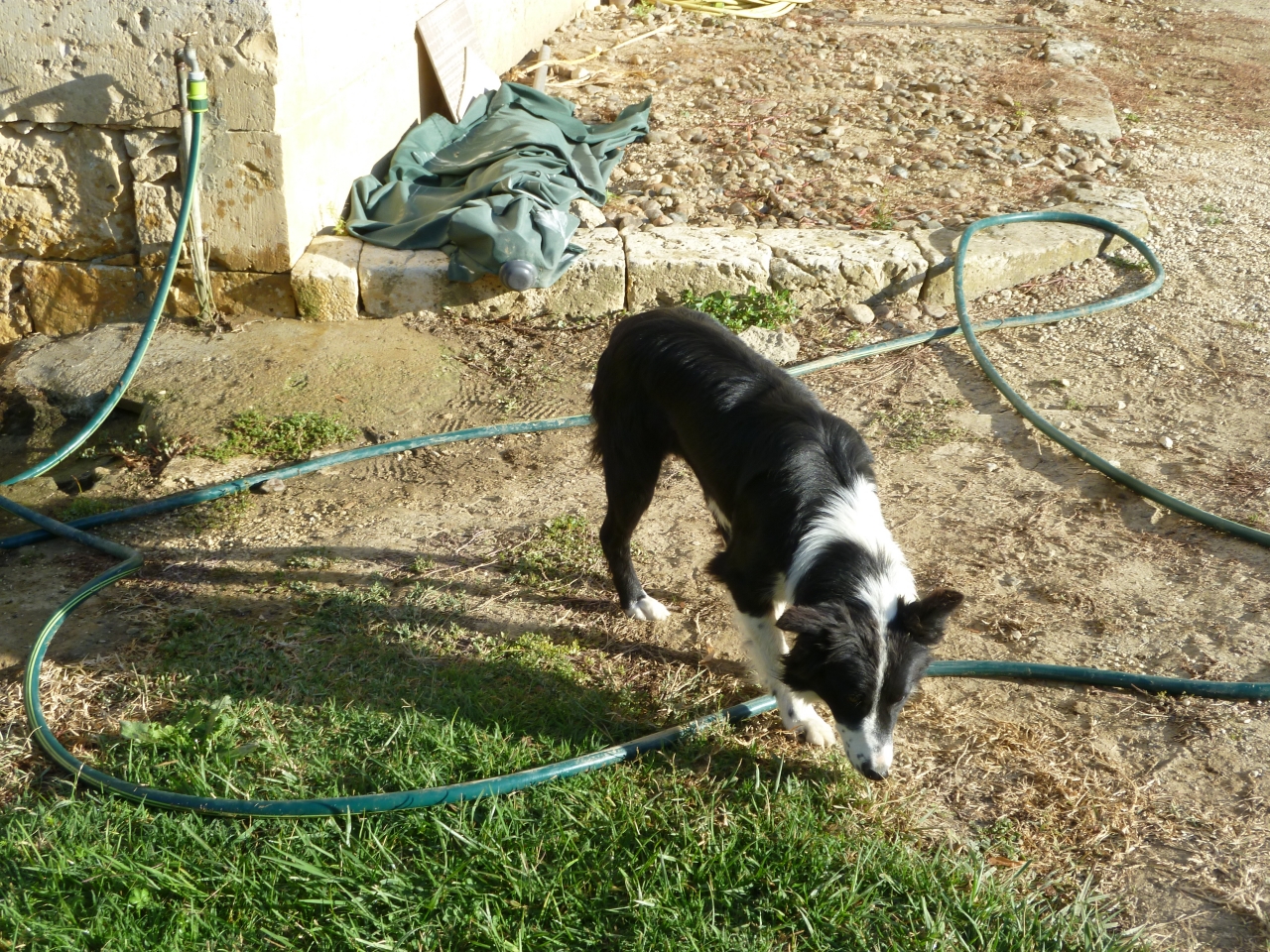 | Dire merci | News du camp pour nudistes... ![]() Flip s'habitue à être à poil (ou pas ). Même si je le trouve affreux, c'était vraiment nécessaire car il commençait à avoir des épis qui rentraient dans la peau et des irritations de peau à cause des graines. Bref, juillet 2017 je pense qu'il refera une visite chez la toiletteuse avant d'aller prendre une douche sous l'irrigation ![]() loustix : en plus tu me l'avais dit, j'ai une mémoire de poisson rouge (enfin, c'est pas mal comme excuse donc cette fois-ci c'est bon, mais je t'attends quand même )Bon, sinon je me suis exercée à un de mes passetemps favoris (ou pas ) - hier nous avons clôturé deux nouveaux parcs pour les chevaux. Comme c'est près du ruisseau, l'herbe est bien verte mais les mouches et moucherons sont bien présents aussi J'ai créé deux parcs pour mettre Doudou et Lumi là où il y a le plus d'herbe et les deux tonneaux là où c'est plus sec...Vue d'ensemble ![]() Petit zoom où on voit quand même les quatre juments ![]() Le pré de Valencia et Becky ![]() Celui de Doudou et Lumi ![]() Petit extra pour prouver que je n'ai pas passé tous mes chiens à la tondeuse La réaction de Java était assez marrante car elle se demandait qui était ce nouveau chien qui lui rappelait quand même quelqu'un ![]() |
