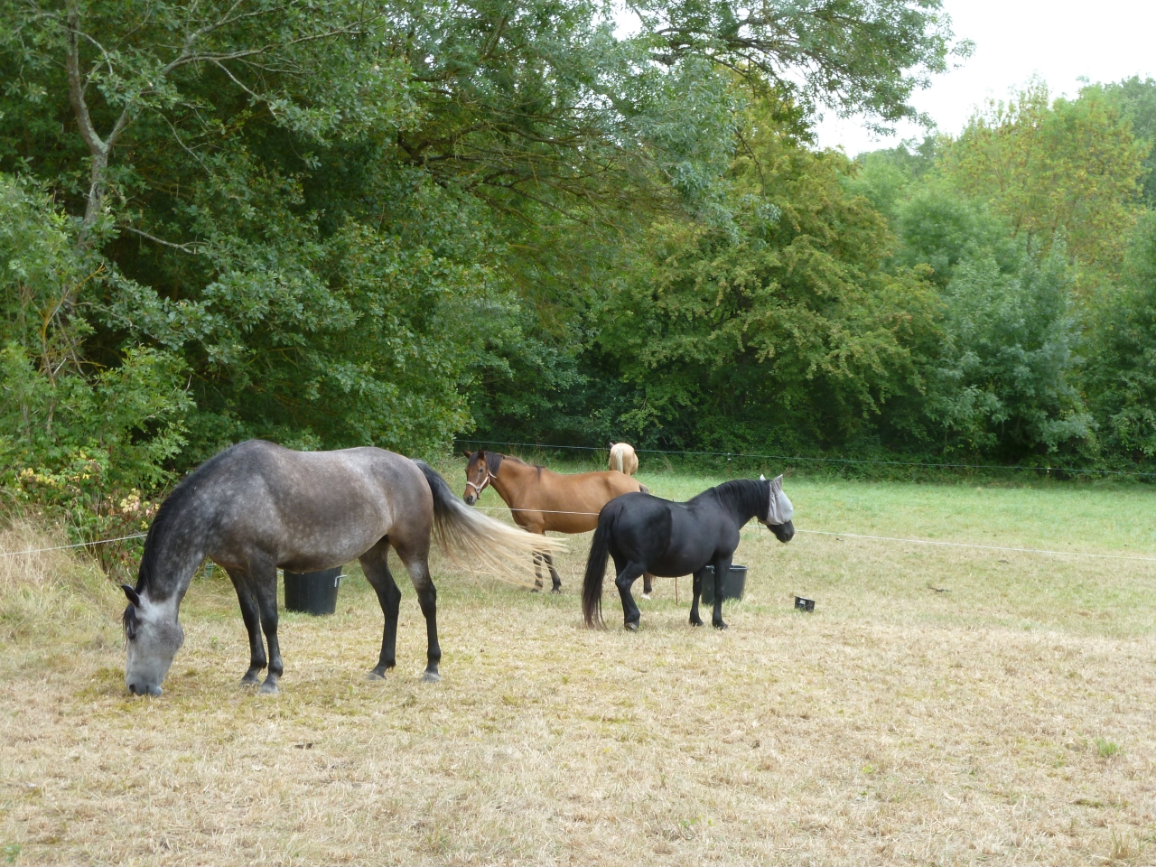| Dire merci | laure40 on a eu beaucoup de vent mais pas de dégâts puis la pluie est arrivée, mais la pluie est vraiment la bienvenue, tout était sec et archi-sec ! Bon, j'ai quelques photos à vous mettre sous la dent même si rien de mirobolant... D'abord ma fille est passée et elle a retrouvé Doudou, donc gros câlin ![]() ![]() Sachant que j'allais déplacer les juments, j'ai ouvert le portail entre les deux prés pour que tout le monde finit de manger tout. Voici les Dalton en visite d'inspection... ![]() Becky et Valencia sont allées voir si l'herbe chez les voisines était plus verte... ![]() Valencia surveillée... ![]() Un genre "d'avant - après" car le pré en premier plan est celui qu'on quitte, et le pré derrière est celui qu'on prépare... ![]() d'un côté ça donne ça... ![]() et de l'autre, ça... ![]() Une fois les juments dedans, elles se séparent comme d'habitude en deux couples... Doudou et Becky ![]() puis Valencia et Lumineuse ![]() On a bien transpiré, mais les juments apprécient (l'herbe, pas notre transpiration )Message édité le 14/09/16 à 23:50 |