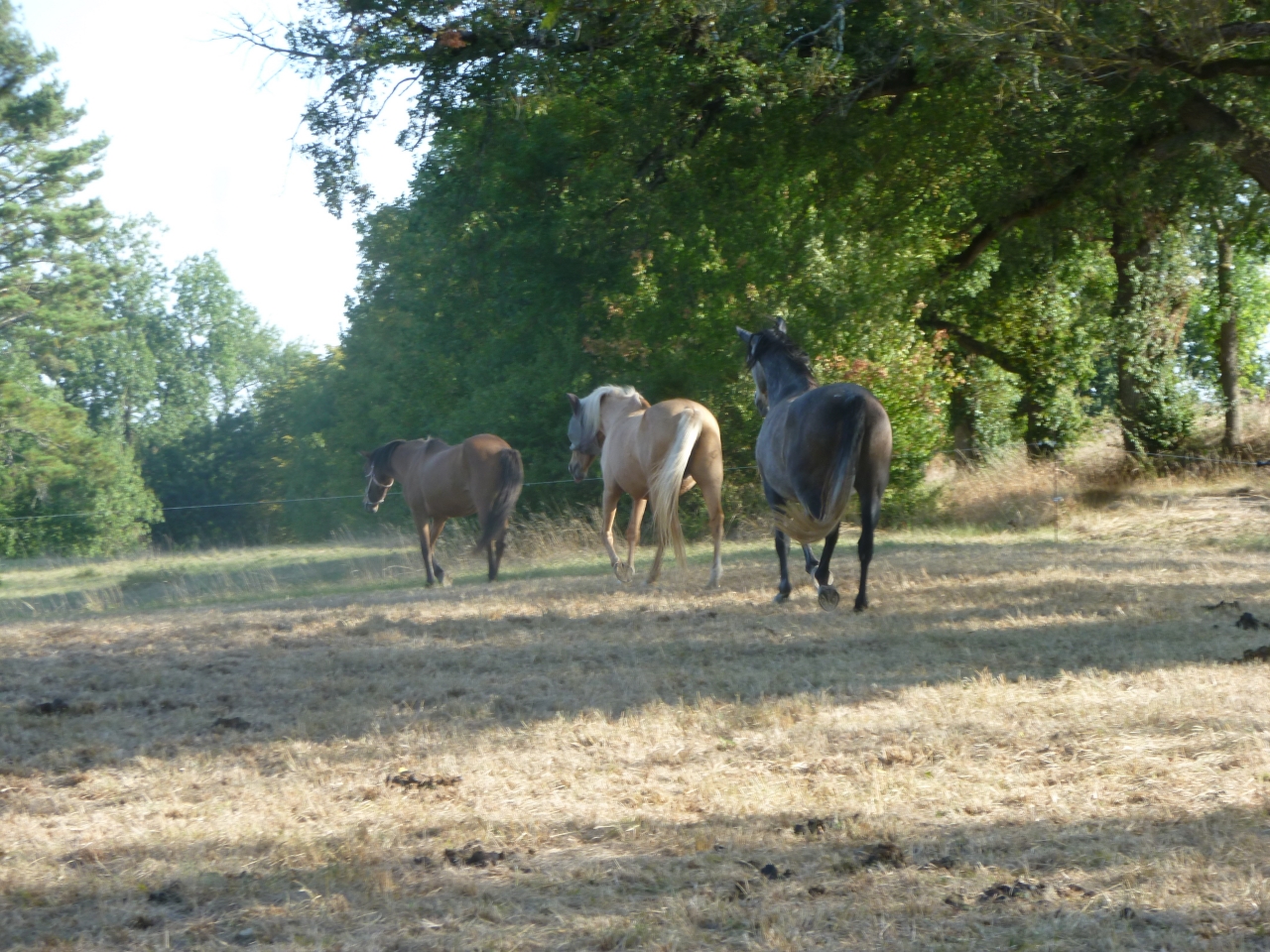 | Dire merci | ici les nuits sont fraîches maintenant, mais les juments n'ont pas encore mis leur doudoune donc j'espère qu'on aura quelques ondées de plus car là il doit faire dans les 20° ce qui suffit pour motiver l'herbe ![]() S. est de retour, donc je vais mettre la poignée sur la selle avant la prochaine balade ![]() |