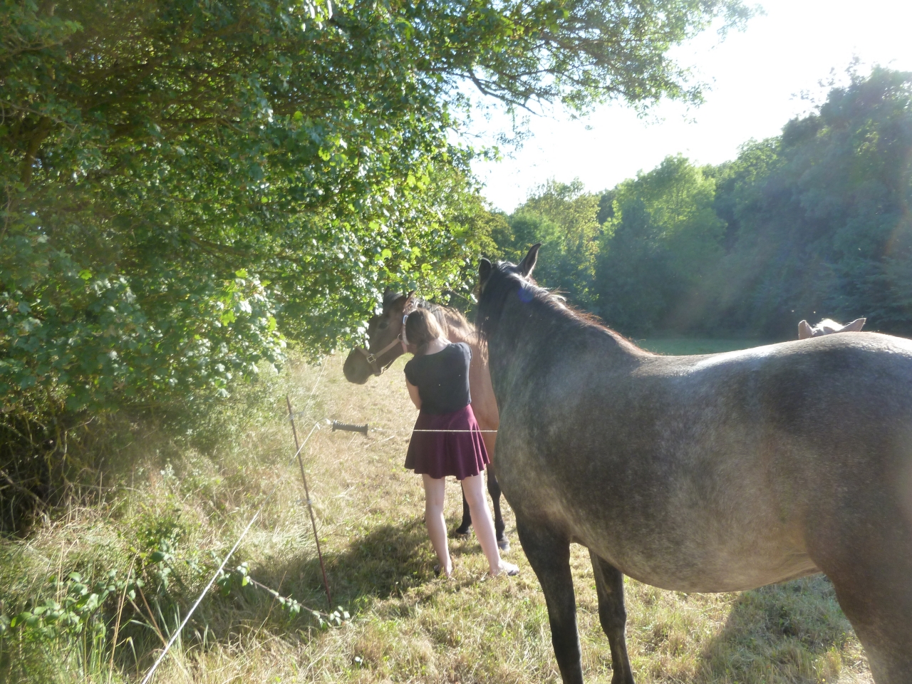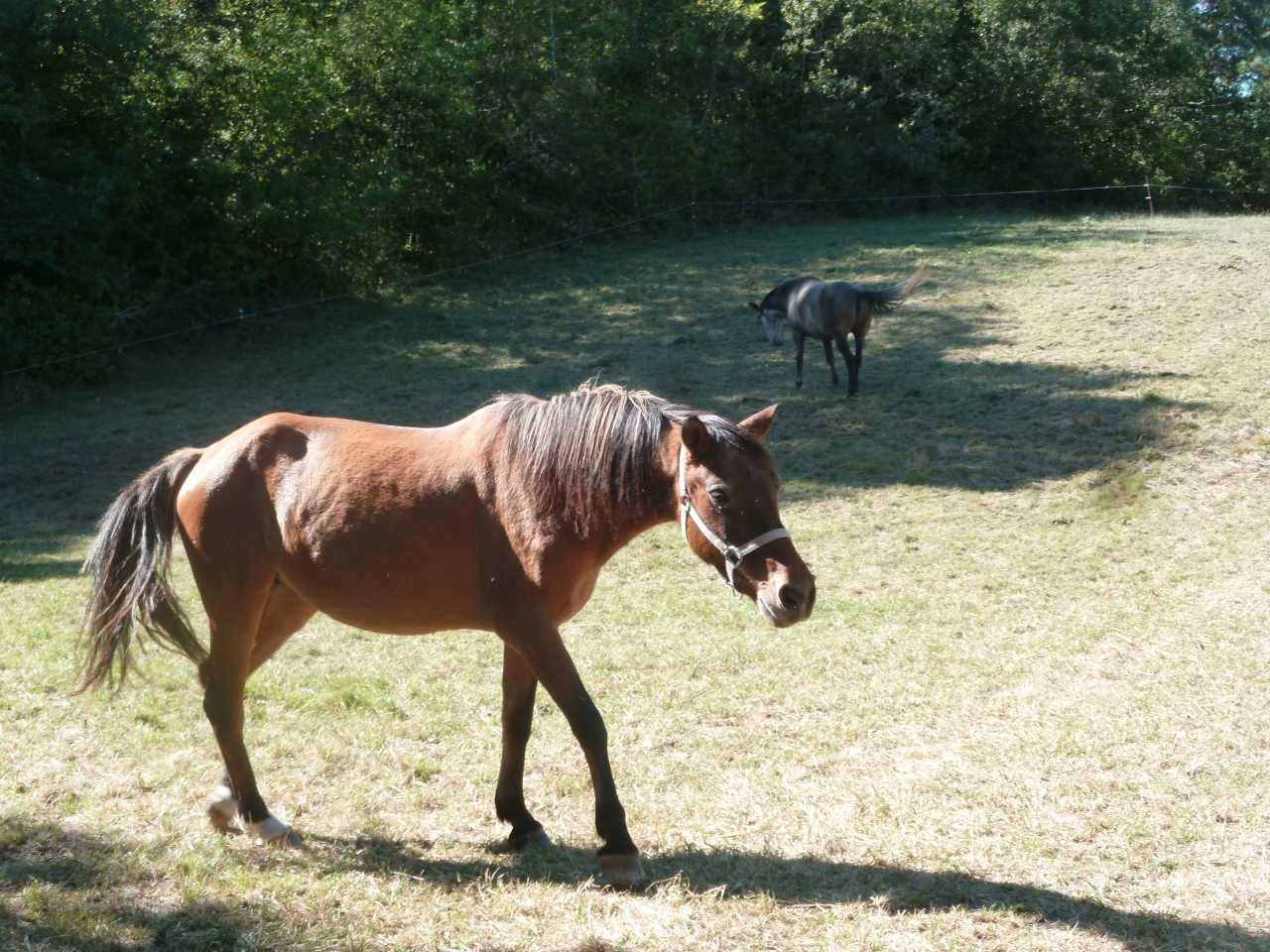 | Dire merci | irisetquiara39 tu aurais pu trouvé quelque chose de plus original pour une fille "bizarre" genre ski nautique sur herbe, nager dans la neige, pousser une brouette avec une chèvre dedans sur 15km... enfin laisser libre cours à ton imagination quoi ah mais oui, ton avis sur le Mitosyl nous intéresse @lilou - on a quand même réussi à en parler pendant pratiquement une page alors que d'autres posts parlent dressage, parage, débourrage nous ici on parle Mitosylage et Cothivetage D'ailleurs ce soir plus de bobo, même les poils ont repoussé déjà ![]() Quant à l'herbe, je vais devoir les bouger quand même de nouveau dans la semaine (je vais faire transpirer laure40 rien qu'en parlant ) parce qu'elles ont bien raclé mais surtout parce qu'il me reste une partie de l'autre côté du ruisseau qui est vraiment très herbeuse, bien juteuse, incroyablement verte, miam miam ça m'a ouvert l'appétit rien qu'en parlant Sinon, j'ai mon beauf avec moi en ce moment donc vacances pour tout le monde, y compris les juments. Mais nous sommes allés les voir aujourd'hui avec ma fille (revenue ce week-end voir son Tonton) et comme ça fait 2 jours que je n'y étais pas allée (c'est Monsieur qui s'y colle pour l'eau ), Valencia m'a sorti un accueil VIP Elle était au fond du pré et elle a levé la tête, hennit et s'est rapatriée au galop, de quoi me booster à fond, c'est bon pour le moral ![]() Je dois avoir une petite photo qui traîne mais j'ai oublié l'APN dans la voiture (caché, heureusement) donc ce sera pour demain. Va falloir revenir alors ![]() |