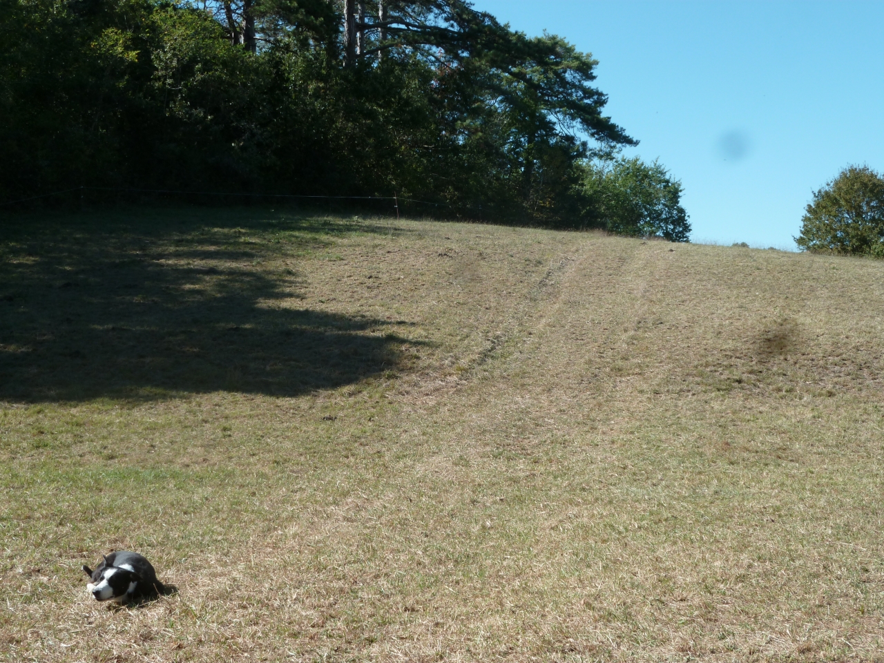 | Dire merci | il y a eu 20 mm de pluie et, j'en reviens pas, tout a reverdi Je n'ai pas l'habitude de ça venant de la région toulousaine mais je suis hyper contente, ça veut dire que je peux bouger un peu les clôtures en les laissant dans ce pré au moins trois ou quatre semaines de plus |