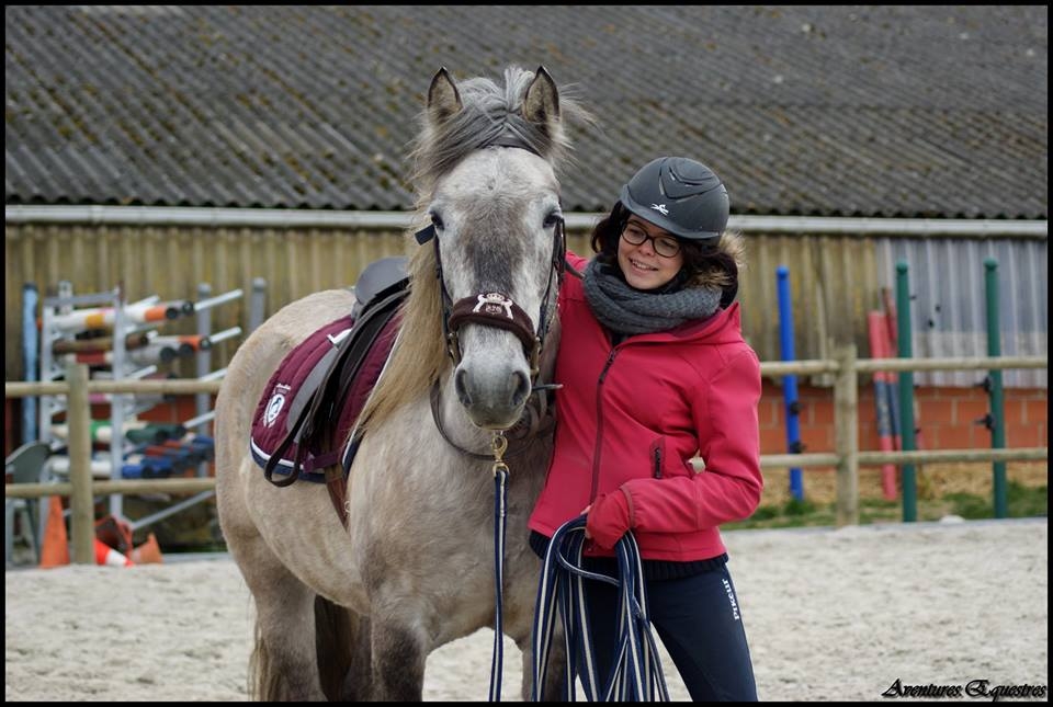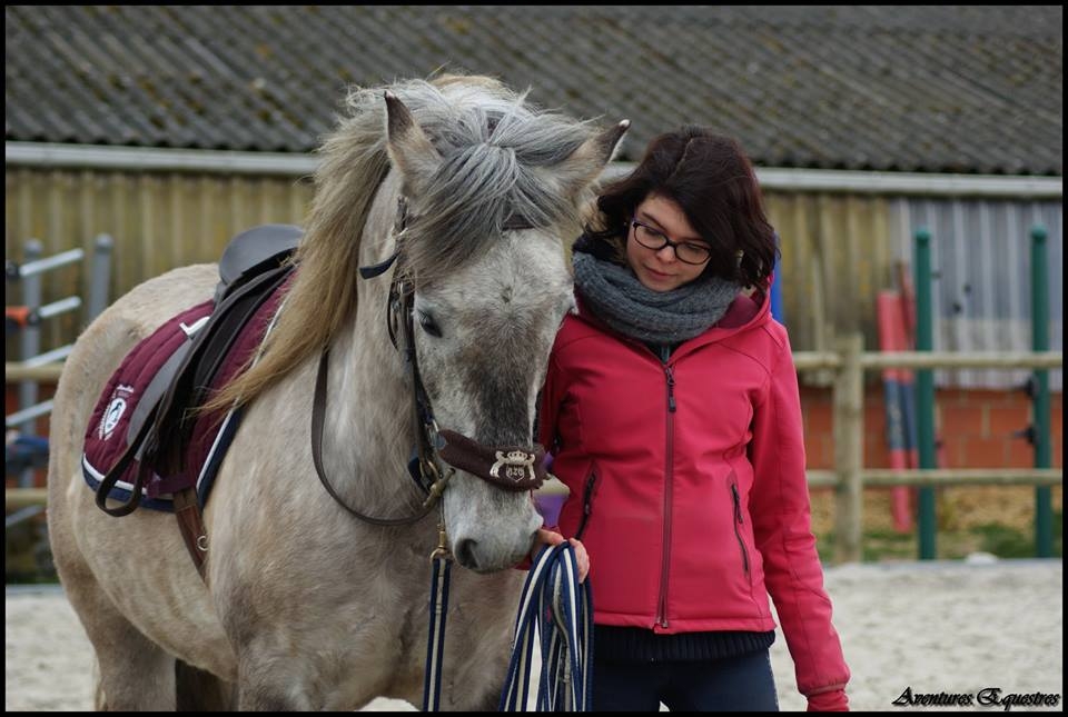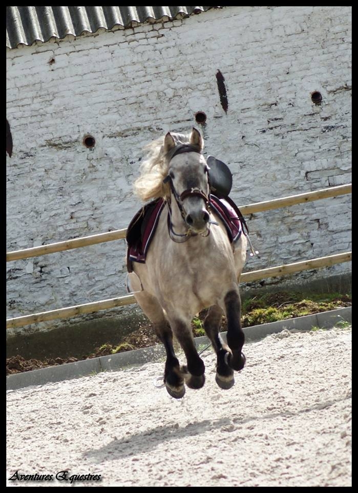 | Dire merci | Arrive cette année, en février je crois... Je ne suis une cavalière qui enchaine les DP et rêve de SON cheval à SOI mais sans trop de possibilités étant étudiante... Voilà que ma prof m'annonce que "Le petit Funny Boy, le fils de Trina, vient chez nous au débourrage", celui-là, je m'en souvenais et je brulais d'impatience de voir ce que ce joli poulain était devenu! Quelques jours plus tard, alors que je suis à cheval sur Trina justement, le van arrive dans la cours... Je brûle... Le pont s'ouvre... Je trépigne... Le poney sort... ET M*RDE.... Non! Pas ça! P*utain il est GRIS ! Sa mère a semblé aussi déçue que moi de revoir son fils comme ça car elle lui a copieusement fait la gueule Bref, j'aime pas les gris, je suis super déçue, en plus il a le poil tout troué car il revient de clinique et à été tondu à l'arrache sur les flancs, l'encolure... Sa queue forme une unique dread locks et pour couronner le tout, il est couillon et reste dans le fond de son box... Déception passée, je me dis que je vais quand même aller dire bonjour à ce truc collant... Je rentre dans son box et entreprend un pansage... Il est calme, pas super zen mais calme, il observe. Je tente un démêlage de queue (3 jours de travail, quand même), aucune réaction au spray, pour un jeune qui sort de sa prairie c'est plutôt cool, j'aime bien. Les jours et les semaines passent, ma prof entame son débourrage avec mon aide pour toutes les parties montées. Il se révèle très sensible et un peu sur l'œil mais très posé. Il sursaute beaucoup mais jamais un pas de travers, il est respectueux et devient de plus en plus câlin et proche de l'homme, sa timidité s'estompe de plus en plus. Son débourrage se passe bien, mis à part une mauvaise manie d'arracher la longe à main droite qu'on endigue doucement. Il est super réceptif et assimile très vite ce qu'on lui demande, il se livre peu à peu. Et moi, et bien, lentement, doucement, je tombe amoureuse |