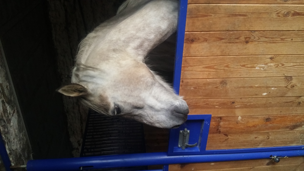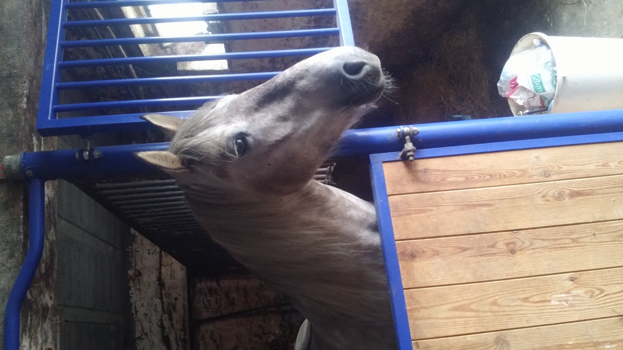 | Dire merci | Ah mais je l'adore mais il ne rayonne pas toujours par son intelligence quoi Dans le genre, quand il est arrivé chez nous il a découvert le box pour la première fois. Il a tendance à chipoter à tout avec sa bouche si bien qu'un matin on a retrouvé son box grand ouvert (porte ET cloison) et lui, ben il était plaqué contre le mur du fond de son box, les yeux exorbités Ou bien ça fait des mois que son foin lui est donné sous sa mangeoire, une fois sur deux il se cogne dessus en relevant la tête |