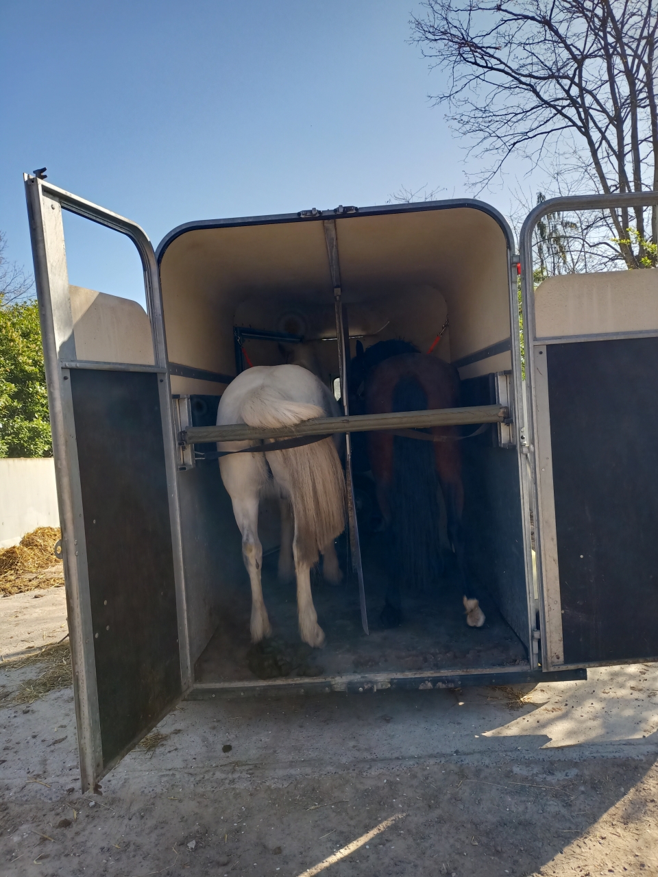 | Dire merci | Bonjour le forum ![]() Petites nouvelles de nous ![]() Le printemps avait bien débuté, Mini progresse dans le travail et mûrit.. Fun fait du gras et un peu de prom-prom ![]() Ils vont bien. Je me suis fait plaisir cet hiver: j'ai investi dans une voiture qui tracte et un van On a donc commencé des sorties balades avec les deux copains ![]() ![]() Fun a fêté ses 14 ans il y a quelques jours, la vie au pré lui va bien ![]() Et si non j'ai accueilli il y a quelques semaines un autre type de copain, qui s'est très vite adapté ![]() Ça, ce sont toutes les bonnes nouvelles ! La mauvaise, c'est que je me suis abîmée un coude. Résultat: 6 semaines en attelle et donc sans monter ![]() Du coup, j'ai craqué mon budget pour faire monter Mini par une cavalière pro. Il progresse bien en ce moment, je n'avais pas envie de l'arrêter maintenant.. Elle est venue le monter deux fois et ce n'était pas glorieux, il teste beaucoup. Il se comporte avec elle comme avec moi il y a un an ![]() Maintenant j'ai un bon feeling avec la fille, je pense qu'ils doivent juste apprendre à se connaître. Mais à la dernière séance il l'a quand même mise par terre deux fois J'espère que ça va aller.. |