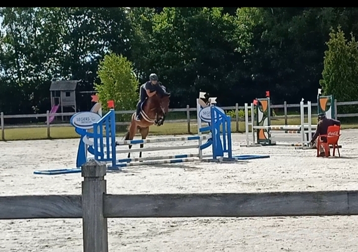 | Dire merci | Certes ce sont des sauts de poulain , mais cela montre qu'il est capable de le faire . et avec le style. Un tréteau ne fera jamais ça. Et oui , tu as trouvé un bon professionnel , ton cheval aura bien démarré et c'est tellement important ! |