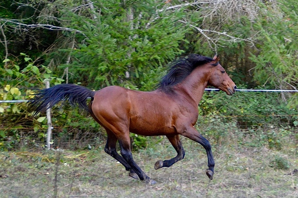 | Dire merci | On va essayer de remettre un peu tout ça au goût du jour Beaucoup de changements depuis tout ce temps, des heureux, d'autres moins Malheureusement Ayad, le fils de Talawat et d'Aftan est décédé en 2018 (torsion). Après avoir pleuré, beaucoup, on a décidé de refaire le croisement, Nahyan est donc né en 2019 et reste donc chez nous pour prendre la relève de son père ![]() En photo, Nahyan à quelques jours de vie Akhesa aussi nous a quittés en 2018, dure année pour nous de ce côté là. Nous avons donc élevé son fils depuis l'âge de 4 mois, jusqu'à son sevrage à 11 mois. Initialement prévu à la vente car porteur SCID, on a pas pu lui résister. On le garde! ![]() Shahraan (Dahess Hassaka x Akhesa beni Sakr) l'été dernier De ce fait, nous avons aussi pris la décision de garder la dernière pouliche d'Akhesa, Ayna (3 ans tout juste sur cette photo) D'ailleurs je n'ai jamais autant reçu de propositions pour elle que depuis qu'elle n'est plus à la vente ![]() On a aussi enregistré quelques départs plus heureux Najmi est parti rejoindre une cavalière pro, avec qui il s'entend à merveille et commence déjà à montrer de belles qualités pour l'endurance. À 5 ans il se qualifie Elite à Uzes (le point allures lui a fait faux bond), en attendant de grimper les échelons histoire d'avoir un carnet de bal bien rempli dans quelques années ![]() ![]() Suwaidan (Partner de Blaziet x Tadjoura) a lui rejoint le Cher où il a pour le moment une jolie vie de couillu avant de commencer en 2020 à être mis sous la selle ![]() Il pousse un peu dans tous les sens mais promet d'être un joli et adorable étalon En attendant, certains ont été remis sous la selle. El Bahr (étalon confié en Alsace) a revalidé la 80 vi en qualifiant sa cavalière ![]() Et Sagar (étalon en Auvergne) a débuté 15 ans sa carrière en endurance, clôturé par une qualif sur 130 km à Jullianges ![]() Il est désormais aussi papa en race arabe après l'avoir été en croisement poney et AA Et même le mien, puisque je suis assez timbrée pour me remettre à cheval après 6 ans et demie d'arrêt (et quelques balades en 2015) avec un étalon qui n'avait pas été monté depuis 18 mois. Donc on ressort à 2 étalons en remettant les allures au fur et à mesure ![]() Il prouve encore une fois à quel point son tempérament est exceptionnel La suite au prochain épisode |