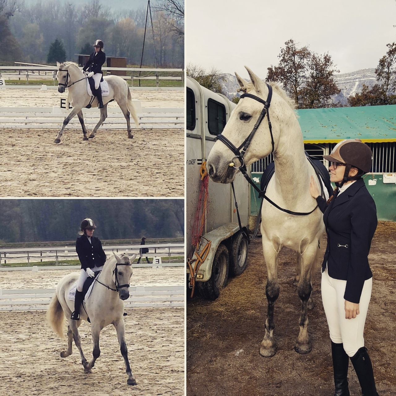| Dire merci | Suite ! Suite à la frustration du matin sur la mise en avant et le passage des coins, lors de la détente pour le deuxième épreuve je travaille beaucoup sur ma jambe isolée, et fait tous les coins dans le manège de détente , et je le mets aussi beaucoup en avant, en mode "allez on est au boulot maintenant" ! et il était juste top, répondant à la moindre pression et plus serein que le matin lors de la 1ere épreuve, je pars plutôt confiante ! Sur la reprise, il y a eu du mieux ! je fais 3 coins/4 , youhouuu petite victoire ! J'ai encore l'impression de le porter, mais quand même moins que sur la club3 , et apparemment d'un oeil extérieur c'était mieux. Les départs au galop du pas ont été plutot réussis, bon une des lignes courbes avait un coin en moins ![]() J'ai encore du progrès à faire ! Mais c'est motivant. On est partis avant la remise des prix, il y avait presque 40 partants et on commençait à être frigorifiés ! J'ai quand même pu récupérer mon protocole et sans surprise je me suis faite allumer sur le tracé avec un 4 , mais bon mérité Pour cette épreuve on termine 10ème/38 (je crois bien ) donc je suis quand même plutôt contente. Je suis sure que d'ici 2 ou 3 sorties il sera encore plus à l'aise sur le carré, et moi aussi Quelques photos de la Club2 Juste avant , j'adore sa bouille ![]() En route ! et miracle j'ai réussi à faire des pions ! avec sa crinière de dermiteux c'était pas gagné. Bon ils sont moches mais on est passés tellement vite que ça se voyait pas ![]() ![]() ![]() ![]() ![]() |