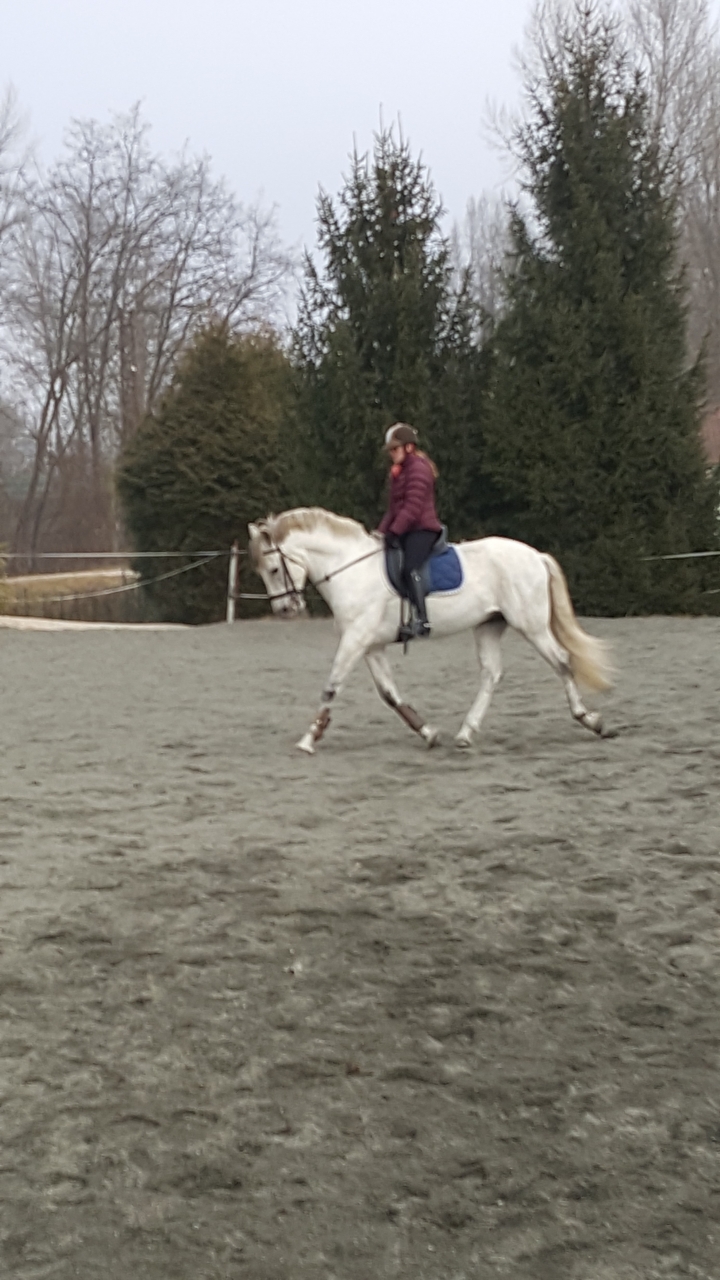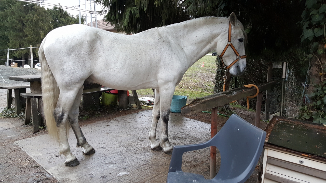 | Dire merci | Mars ou avril, On recommence doucement le travail monté, avec un cheval quand même bien changé, qui naturellement est plus en bas, plus détendu. On continue en parallèle le travail a pied, en longe, en longues rênes..pour pas perdre cette bonne lancée. Puis on continue les balades, il a vraiment pris goût à sortir, même tout seul. Une photo d'une séance cet hiver ![]() Enfin, dans la lignée de news importantes, on a commencé les piqures pour la désensibilitation pour le traitement de la dermite. Il est allergique à des taux tellement élevés qu'on avait peur d'une forte réaction aux piqures, mais finalement rien du tout, ouf. En parallèle il est traité avec hippodermite aussi, et par rapport à l'année dernière c'est flagrant il est beaucoup moins atteint. Je pense pas que les piqures fassent encore effet, mais le changement d'alimentation doit aider, puisqu'on a retiré les céréales depuis que son allergie avait été remarquée. |