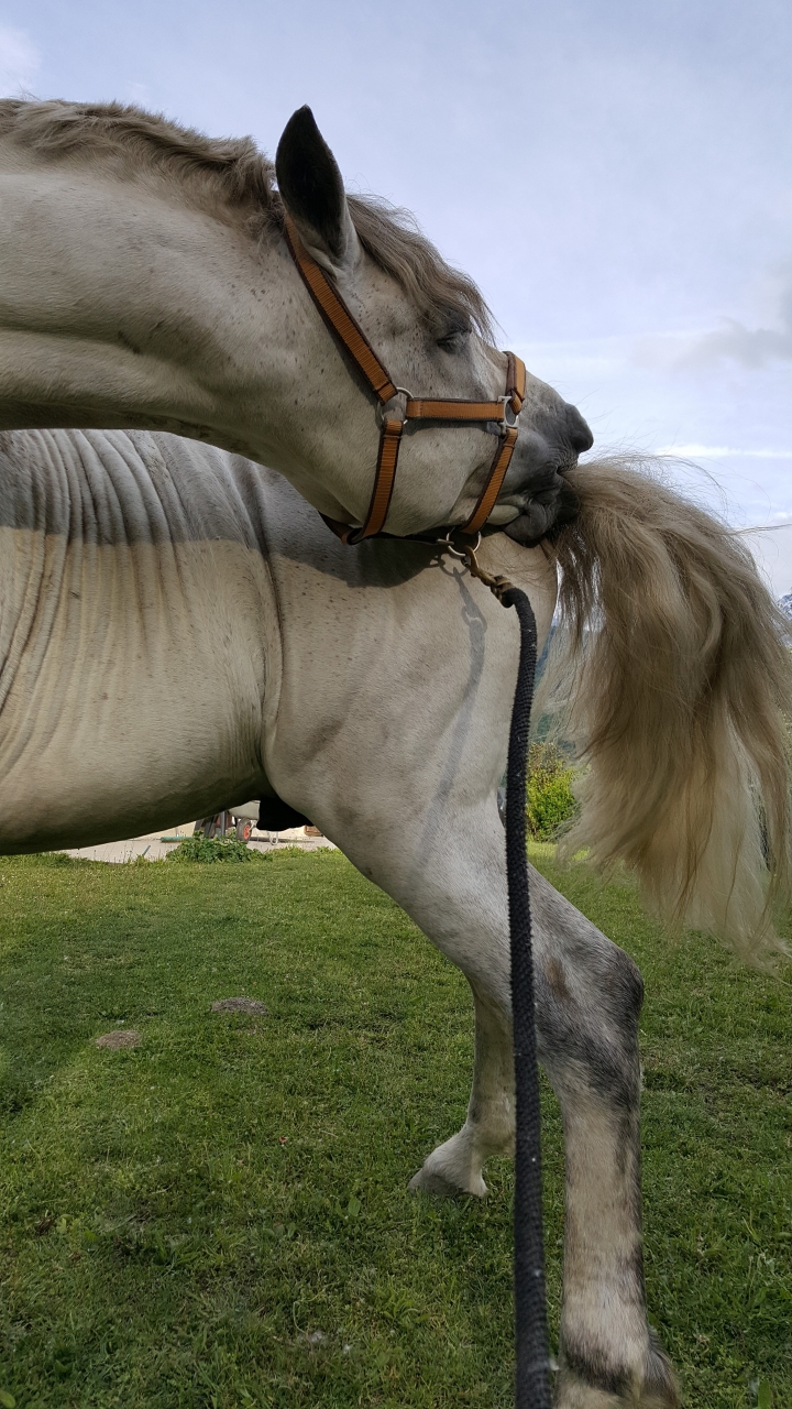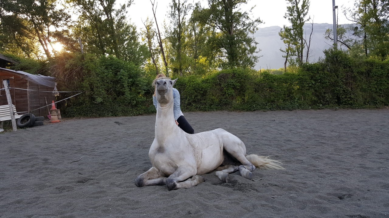| Dire merci | On a refait un peu de travail à pied, qu'on avait un peu délaissé depuis quelques temps... Coucher et gratouilles = tête de chameau garantie ![]() Ca a l'air rapide comme ça, mais la vérité c'est que ca faisait presque 10 minutes qu'il grattait et tournait en rond et que je lui demandais le coucher ![]() Et que ça gratte ![]() ![]() Chameauuu ![]() J'aime bien partager ce genre de moment avec lui |