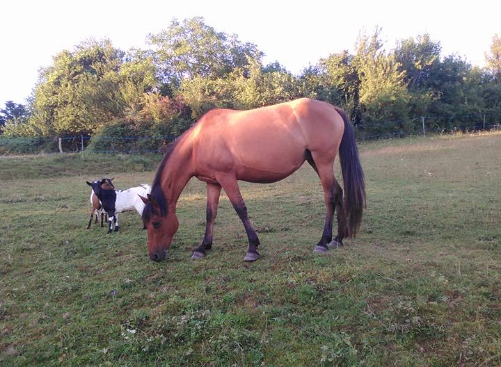 | Dire merci | Salut, Salut ! Ça y est je me lance et je fais enfin un post sur ma bande de mollusques ! Je vous présente donc les poilus en question ![]() Tout d'abord la première arrivée, Upala du Turel dite "Youpi", ponette connemara-hispano-arabe de 2008 ![]() ![]() Suivie par ma Gaïa, berger australien du Turel aussi, née en 2011 ![]() ![]() ![]() Ensuite viens ma grosse dondon Ambre, trait breton-comtois de 2010 ![]() ![]() Puis encore un du Turel, Celebrity dit "Titi" né en 2012, arabo-merens-baleine ![]() ![]() Et là attention on ne se moque pas mais j'ai un faible pour les noms débile/bizarre donc ... Double Trèfle Dorée dite "BB Trèfle", fille de ma Youpi et de Shamrock (Co), née en 2013 ![]() ![]() ![]() Et pour finir Fairy Tale, fils de Youpi et Sand Storm Angel Pah, né en 215 ![]() ![]() Voilà pour la présentation ![]() |