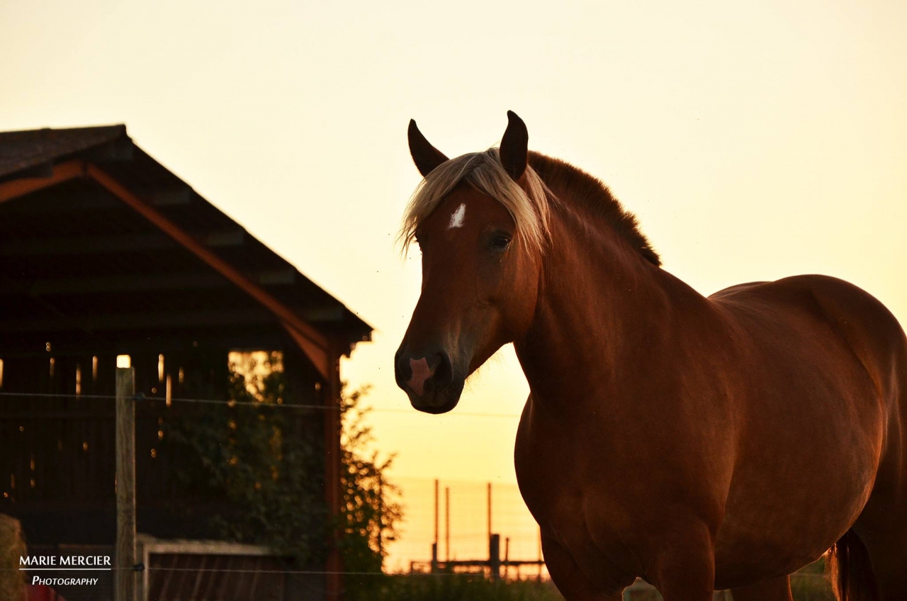 | Dire merci | Quelques nouvelles des poilus ! J'ai enfin reposé mes fesses sur Miss Youpi après 2 ans ! ça fait un bien fou ! enfin ... pour moi ! Mademoiselle n'était pas des plus ravie et j'ai l'impression qu'elle m'a gardé 2 ans de bêtises en réserve mais pour une "reprise", enfin si on peut dire ça elle était quand même sympa !Par reprise j'entends qu'on avait fait une balade il y a 2 ans quand elle était en début de gestation pour Fairy et que ça faisait aussi 2 ans que je ne l'avais pas monté ... avant ça elle avait juste eu un débourrage avec quelques balades, 2 sorties à la mer et une fête médiévale donc en fait en y pensant elle est plutôt super cool ! J'ai également posé mon popotin sur Ambre en carrière pour la 1ère fois ! C'est vraiment un fauteuil de rêve ! Aucun soucis avec l’arrêt mais je ne trouve pas le bouton de démarrage ... Je l'ai "monté" 3 fois dont aujourd'hui où elle commencer à comprendre qu'elle pouvait marcher malgré le bipède déséquilibré sur son dos ! On a réessayer la longe, j'avais testé avec elle il y a 2-3 ans et elle se comprenais absolument pas le concept, elle me faisait des pseudo carré elle avancé dans une direction en ligne droite et oups ! plus de longe ! elle tourné et recommencé dans une autre direction ça n'avait vraiment pas fait tilt , aujourd'hui elle a compris le concept du cercle mais fait 3 pas puis s'arrête en me regardant l'air de dire "ben c'était ça ! tu as dit "ouiii" donc j'ai fini non ?", le trot ce n'est même pas la peine elle pige pas non plus ! en liberté pas de soucis et en main non plus mais là c'est le trou noir pour elle ... il va falloir que je me creuse un peu les méninges pour trouver ce qui lui convient et ce qu'elle comprend , si vous avez des idées ! avec elle je nage dans le brouillard total ! heureusement qu'elle est adorable et aussi posé qu'un moine bouddhiste !!! Et pour finir, le sortie du petit Fairy ! Après une galère à ne pas pouvoir le sortir de son ancien pré aujourd'hui après 25 min on sort enfin ! Oui car les fils font très très très peur !!! On en a profité pour faire un méga pansage, avec soins des oreilles (merci les moucherons ... ), atelier coiffure et il m'a donné les 4 pieds que j'ai pu lui curer !!! (Ma petite victoire de la journée ! il en faut peut pour être heureux !) Je pense que se sera un très gentil petit cheval, il lui faut un peu de temps pour analyser et comprendre mais une fois que c'est bon c'est acquis ! Résultat un petit seau de grain pour lui montrer qu'on ne lui fait pas que des misères hors du pré et retour avec les copains (non sans mal non plus mais on va y travailler) ! Voilà pour le résumé de ces derniers jours Et juste avant les quelques photos (de qualité téléphone ...), autre joie de ma semaine ma petite Gaïa nous a accompagné ma cousine et moi en balade hier ! c'est la première fois en 5 ans qu'elle suit et pendant toute la balade en plus donc je suis très contente ![]() |