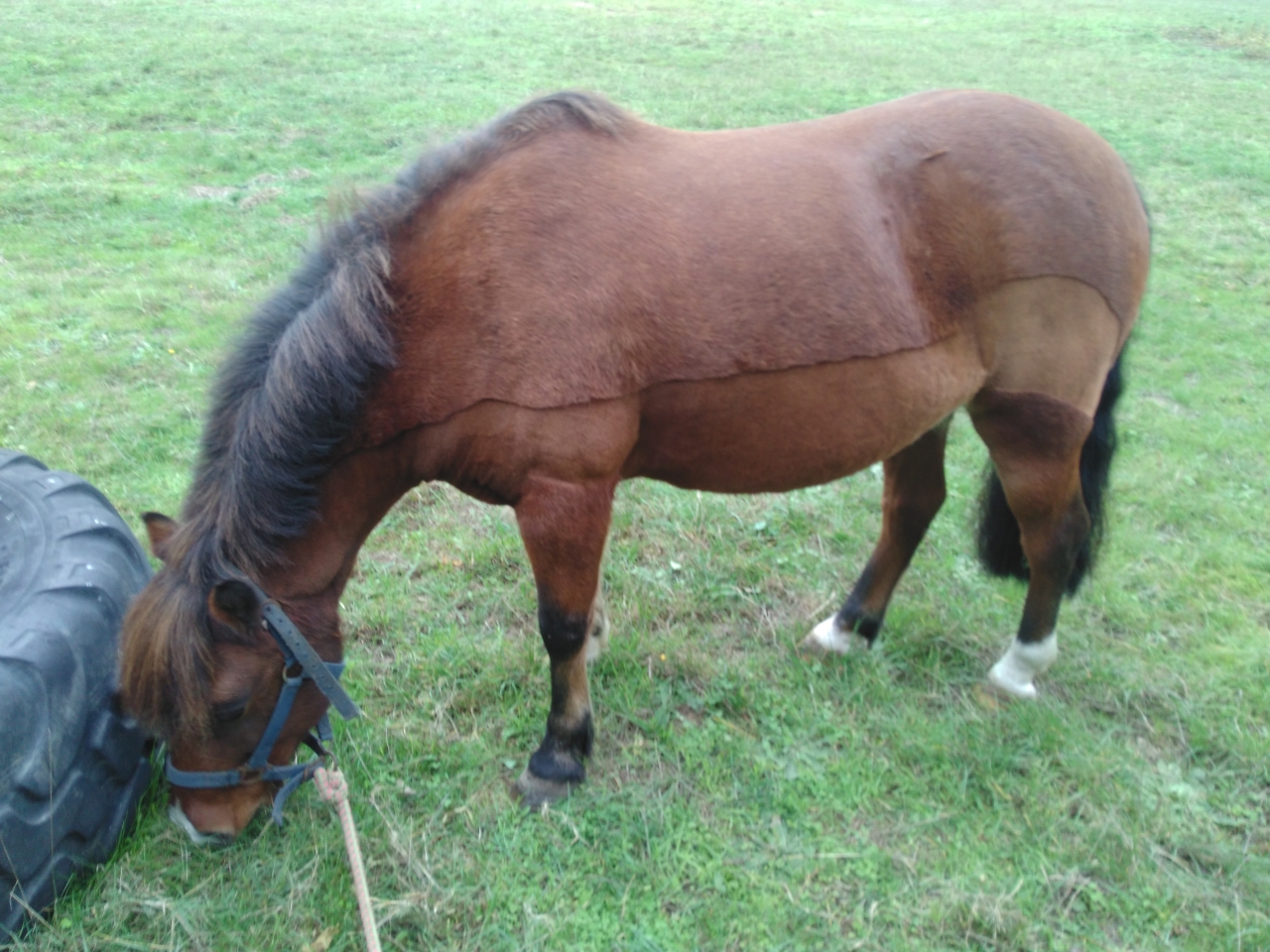 | Dire merci | Bonjour à tous ! Les résultats de la prise de sang sont arrivés, et en fin de compte il s'agirait plutôt d'un problème de reins (calculs ?) Eclipse va mieux, il est en arrêt et à des médoc à prendre bien sûr ![]() Hier j'ai été le voir et le proprio m'a dit d'aller le faire brouter dans la plaine, que ça lui ferait du bien, alors grosse séance pansage (monsieur s'était roulé dans la boue) et petit brouting ! Poney content haha ![]() |
