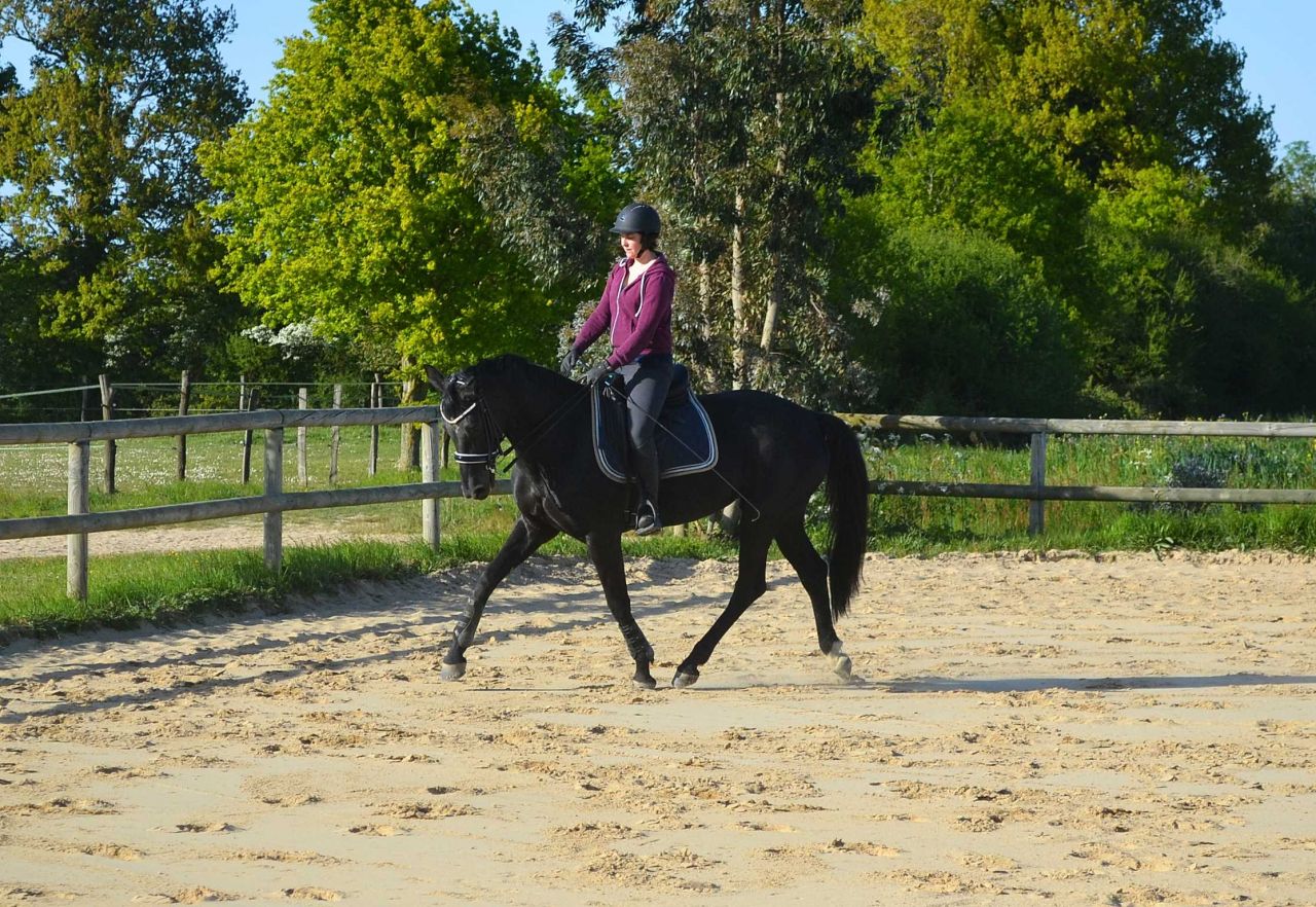 | Dire merci | Bonjour, bonsoir chez vous ! Je me lance, je créer mon post ! (Hou là là m'en faut du courage !) Donc depuis début juillet 2016 me voici propriétaire de la douce et délicate (hu hu hu) Diva Divine (Oui oui c'est très sobre comme nom !) jument hanovrienne de son état de 6 ans actuellement (avril 2010) Elle a fait les modèles et allures à Saumur vers ses 3 ans, vient d'un bon élevage et d'une bonne famille (diantre je peux même pas me faire mousser d'avoir sauvé un cheval...) mais elle n'a pas fait grand chose entre ses 3 et ses 6 ans ... Elle a commencé à travailler "réellement" en janvier de cette année... Mais je passerai les méthodes qui ne m'ont pas plus plu que ça... Du coup je l'ai laissée 3 mois chez un pro que j'affectionne tout particulièrement en Ile de France qui la bossait le temps de passer mon permis et de trouver une top écurie et un top coach là où je suis maintenant ! Et je ne puis tomber dans meilleur endroit puisque par hasard je me retrouve chez Espoir et Chrysalis qui m'apprend pleins de trucs trop chouettes !! (comme le travail à pieds, à l'épaule et qui m'aide beaucoup en selle !) Donc Diva recommence tout à zéro depuis 1 mois... Mais genre... A zéro, zéro, zéro... Un tantinet frustrant, mais très enrichissant ! Nous apprenons toutes les deux ensemble une nouvelle façon de travailler, son physique et son mental s'en ressentent ! Elle qui partait en coups de dos, tiquait +++, grinçait des dents +++, est maintenant de plus en plus confort dans ses chaussures ! Pour illustrer le tout ... Diva à son arrivé le jour de l'achat en juillet 2016 : ![]() Première séance en selle... Fastidieuse. Des réticences de sa part, des défenses... ![]() Aujourd'hui on a changé de mode de vie (pré journée, boxe la nuit), de mors (d'un mors de bride double brisure à un mors épais en cyprium double brisure aussi), et de méthodes de travail, plus ferme et à la fois moins contraignant pour elle. ![]() Et en selle : ![]() Voilà voilà et puis bah... J'espère bien continuer de progresser dans tout les domaines avec elle maintenant que nous sommes (très) bien entourées ! |