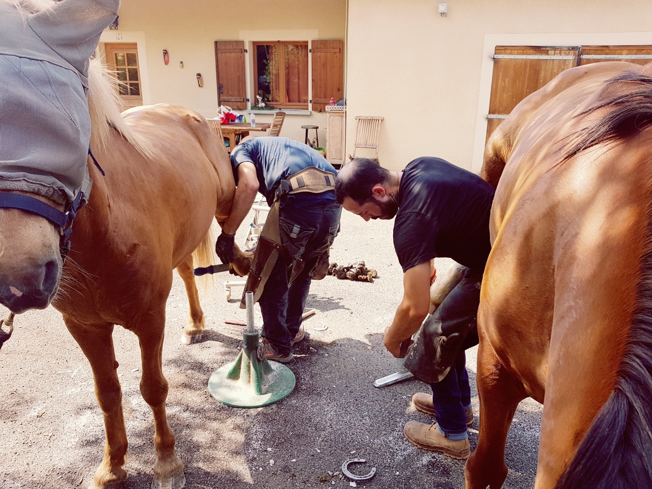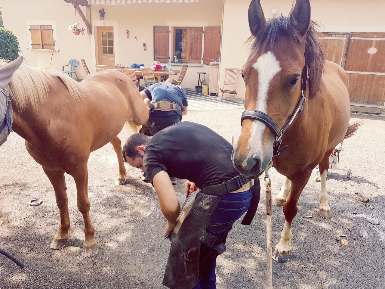 | Dire merci | Parce que nous quand le maréchal vient c'est pas pour de semblant ^^ Un maréchal par cheval. Ça a été vite fait ^^ Sages comme des images les poneys ![]() ![]() |