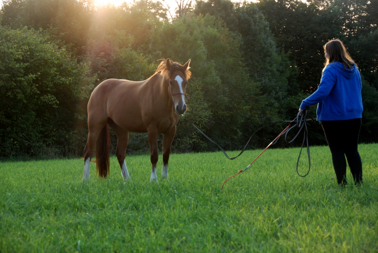 | Dire merci | La semaine dernière nous avons repris notre premier cour depuis notre départ pour le pré en juin. Quel bonheur !! Cobra était hyper contente de bosser, on a travaillé les incurvations, elle a fait ça comme une chef. La miss s'exprime beaucoup pendant nos séances, elle grogne quand c'est dur, elle bouge les oreilles dans tous les sens, elle discute parfois.. mais si on insiste un peu sans s’énerver, elle accepte la demande et se met a fond. Bref je suis ressortie enchantée de mon cour. Hier, de bonne humeur, je décide de retravailler un peu l'exercice fait la semaine d'avant. Et je monte seule pour la première fois... Je vais chercher cobra au pré, je brosse... elle gesticule a l'attache, gratte du pied.. je l'engueule un peu. une fois harnachée nous allons dans le manège et je me dis que je vais bosser un peu le montoir (quand je monte elle ne bouge pas mais c'est compliqué de la placer a coté du plot : c'est plutôt le plot qui doit venir a elle ^^ ) bref... Elle fait un cirque pas possible.. Tape de pied, recule, s'énerve... Je ne comprend pas ce qu'elle fait... elle fini par rester tranquille et je monte dessus.... et là... fouaillement de queue, oreille en arrière... je met des jambes... elle recule, comme une folle... Je ne touche pas du tout aux rênes, je lui parle... elle continue a reculer... je lui demande d'avancer avec mon bassin sans les jambes, elle menace de se lever et recule dès que j'arrête... Je ne sais même pas comment descendre... Alors j'ai attendu, qu'elle s'arrête, on a bien du faire 100m en marche arrière et je descends... Elle couine. Je n'arrive pas a savoir si c'est du test ou un réel problème. Je la fais marcher, je longe aux 3 allures... RAS... Je suis énervée, stressée, dégoutée d’être incapable de monter ma jument seule... Je la lâche au manège et je sors me calmer. Quand je reviens elle vient me faire des câlins mais refuse que je sois au niveau de son dos... Sur le coup je pense que son tapis était mal mis... je la rentre au pré dégoutée... En rentrant, une fois calmée... je réfléchis un peu.. et je me dis que ce n'est peut être pas un test.. Ça parait excessif comme réaction. Même en admettant être stressée de monter seule… j’en ai parlé avec ma monitrice, pour elle c’est carrément les ovaires. Elle me dit que c’est trop extrême… On reprend un cours lundi prochain. En attendant je vais travailler a pied. Ca va devenir vraiment problématique ces chaleurs… Surtout qu’elle n’est pas régulière, je ne peux pas anticiper. Elle aurait du les avoir la semaine dernière… Bref les chevaux c’est simple, mais ce n’est pas facile pour autant ![]() La suite au prochain épisode. ![]() |