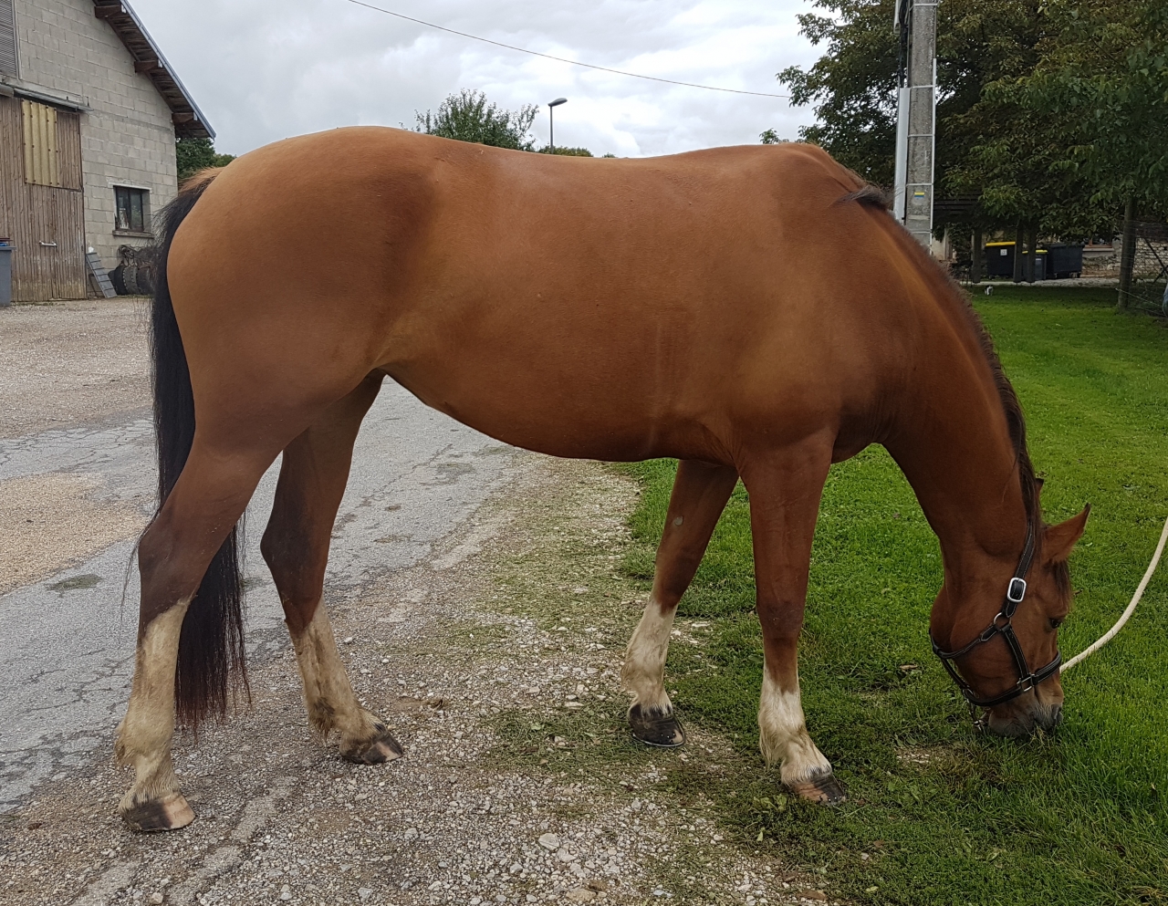 | Dire merci | Je ne vois pas grand chose sur la vidéo, à part le moment où elle semble soulager le postérieur droit ; au trot cela aurait peut-être été plus parlant. |