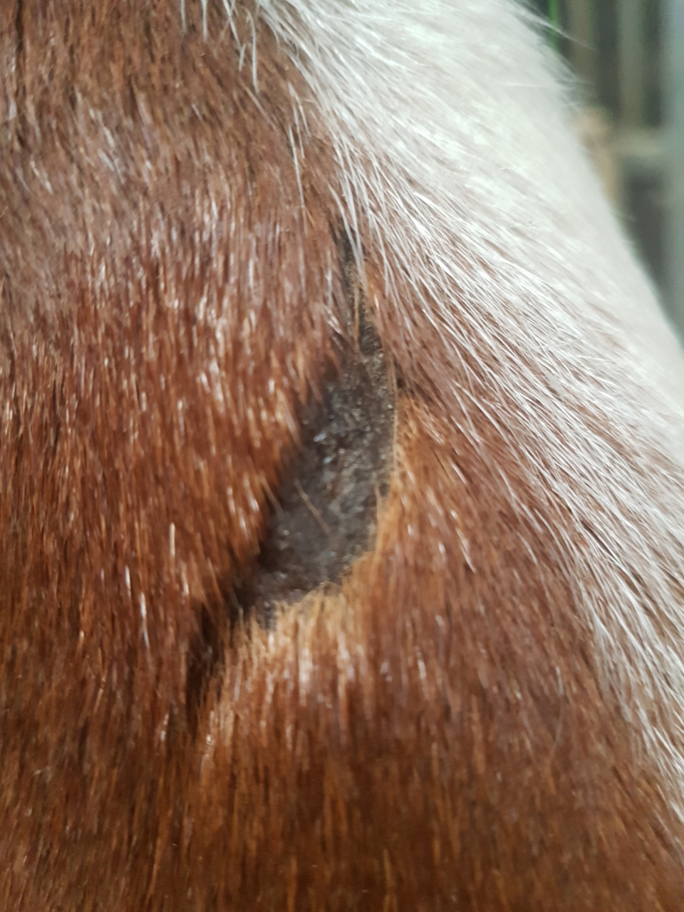 | Dire merci | sheytana Pour le premier œil, j'ai tout de suite pensé a un coup.. Mais c'est vrai que pour le deuxième c'est bizarre cette chute de poil sans blessure ouverte... ? Ou alors l'hématome fait tomber les poils ? Jarpur était au pré depuis 10ans avec 15 hongres... J'en ai vu un paquet des blessures de bagarre mais ça ne ressemblait pas à ça ? C'était blessure avec sang rarement OU Arrachage de poils, mais c'était moins net. Après ils étaient dans un pré avec une grande stabulation libre, donc clairement il ne se cognait jamais sur du "dur". Mais en effet c'est très probable qu'il la chasse fort et qu'elle se cogne dans l'abri... L'abri est très bas et en pierre. Et Jarpur n'aime pas trop Cobra. Ils ne s'entendent pas. (sauf pour faire des galipettes en été...) ![]() Bon je ne m'affole pas alors... ![]() |