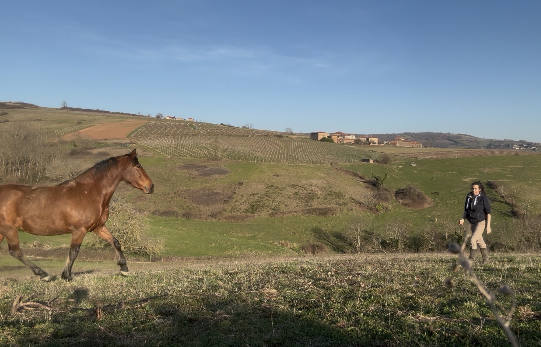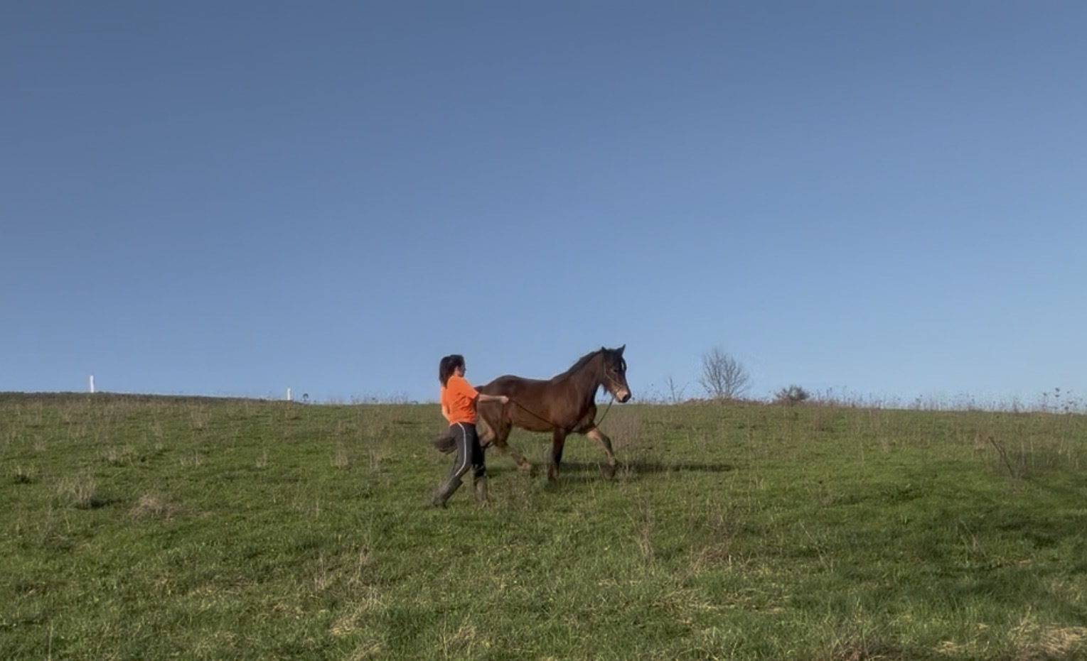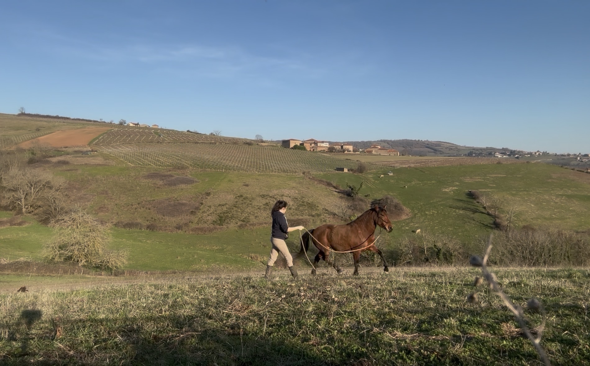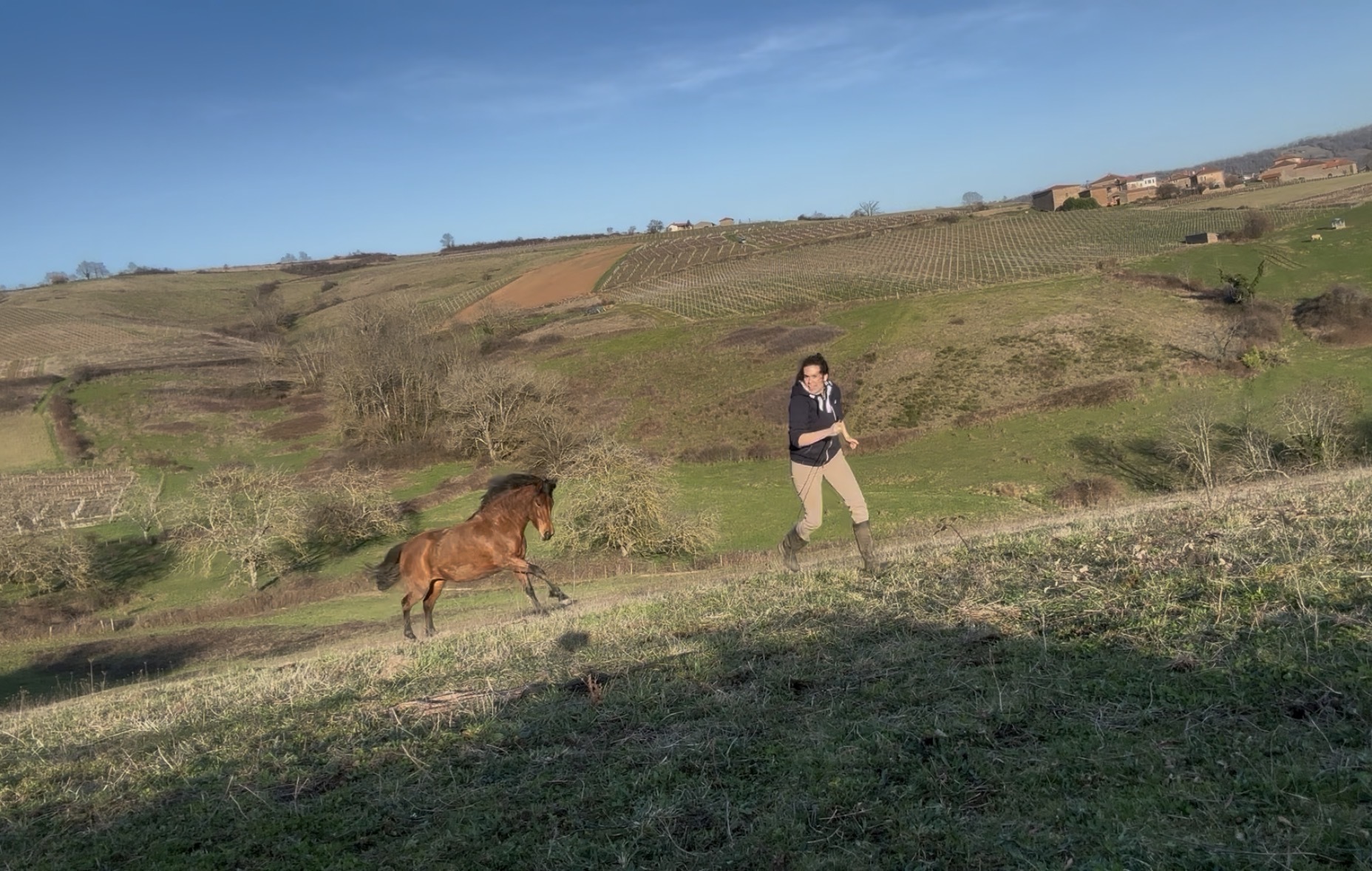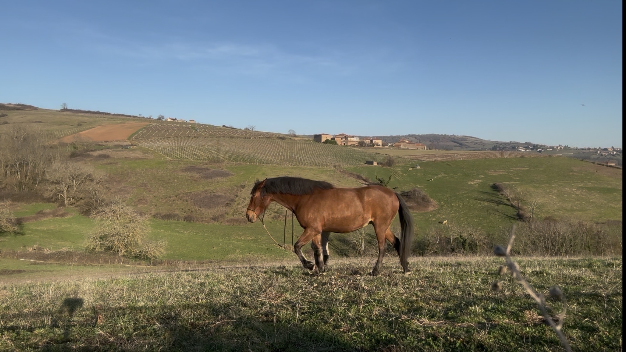 | Dire merci | Ensuite Nightcall. Elle m'épate sous tous les angles... quand je pense que je la vendais 4000€ et qu'elle n'est pas partie, je ne m'en remets toujours pas et à la fois je suis vraiment contente de ce concours de circonstances. Pour une juste 3 ans elle est incroyable. On dirait une 5-6 ans, elle fait vraiment finie, ronde, magnifique avec ses crins frisés. Et au quotidien, elle n'a rien à envier à mes adultes. Elle ne regarde rien, elle passe partout, elle est très fine, bouge vite et bien. On la prend dans le pré, on l'emmène sur la route derrière le quad. Même pas besoin de regarder ce qu'elle fait ni où elle est, car elle est toujours où il faut comme il faut quel que soit le terrain ou la vitesse. Vraiment elle est pétrie de qualités et ça me laisse entrevoir de belles choses quant aux futurs poulains de Jane même si son retour à la repro n'est pas encore d'actualité Les photos sont issues de vidéos visibles sur Facebook, elle bouge comme un chat pourtant le terrain est en mega pente |