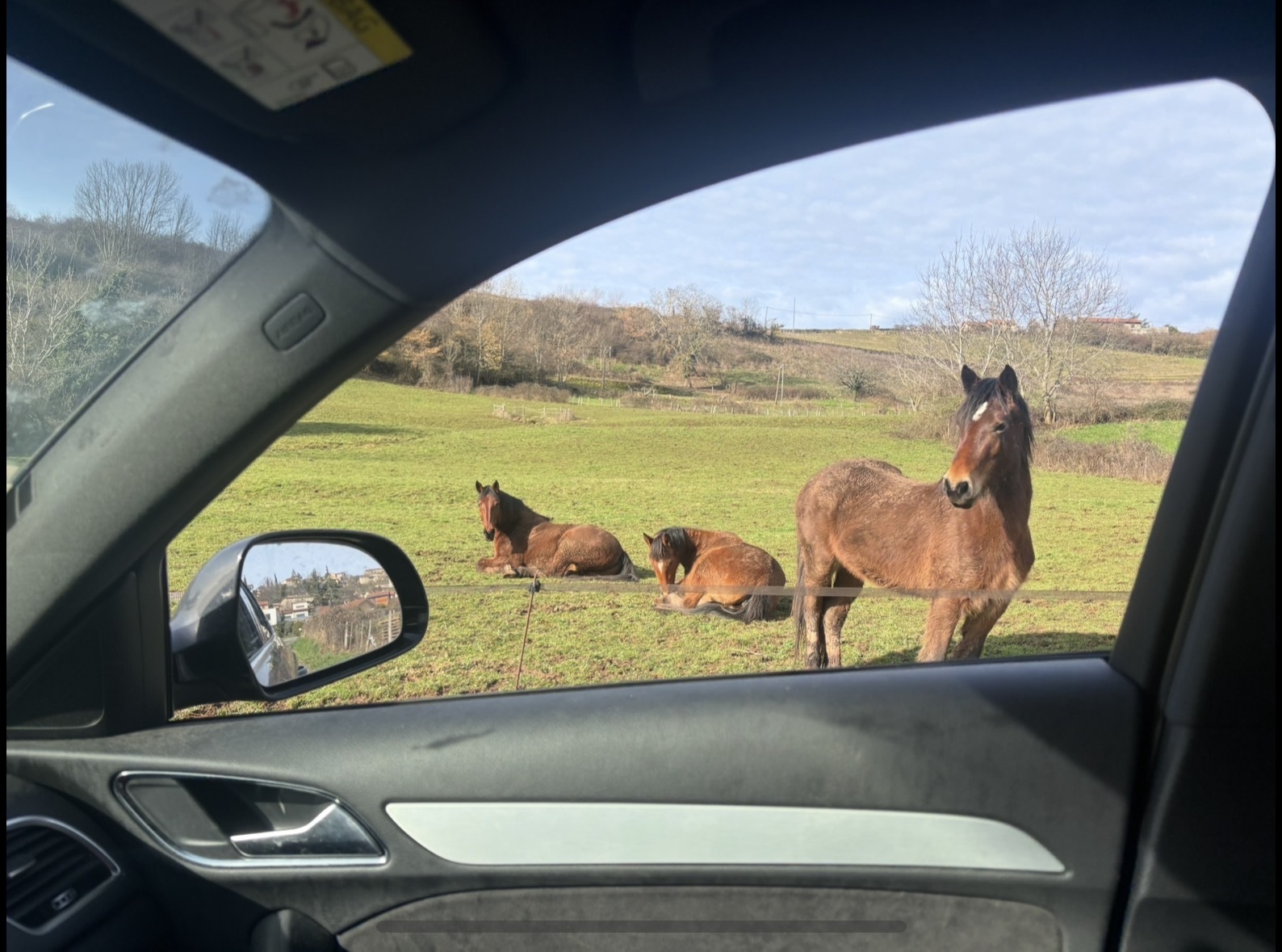 | Dire merci | Ça bosse toujours sortie de 2h30 avec Jane mardi avec dénivelé + , c'est dur pour elle et son obésité donc on y va tranquille. Elle s'est à moitié cassé la binette dans une zone une peu escarpée et a pris un œdème sur la face latérale de l'antérieur... sans boiterie... à suivre! Sinon elle ne regarde rien du tout c'est chouette, on a fait au moins 5 passages à gué et on a sauté 2-3 troncs. Il faut vraiment prendre du fond en vue des trecs ! J'ai bossé au van ma petite northern : quitter le pré, prendre la route, être toute seule à la maison à l'attache, monter et descendre du van plusieurs fois et rentrer elle a été exemplaire |