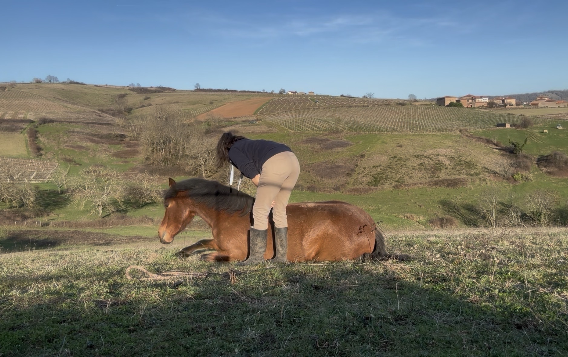 | Dire merci | Suite à une cascade en trotting (elle a glissé et comme d'hab pas essayé de se rattraper.... je suis restée en selle mais on a fait une drôle d'action) Jane avait un tendon antérieur pas parfaitement sec... j'ai donc calmé le jeu on a fait du pas à plat et du TAP Je m'entraîne à coucher elle et sa fille en même temps elles sont vraiment drôles elles ont bien compris et font un peu n'imp du genre se coucher à moitié l'une sur l'autre elles veulent toujours tirer lacouverture à elles c'est marrant Hagrid n'était pas super au foin en troupeau, il a bien décollé et était très acariâtre il me les a toutes un peu tonchees... du coup je l'ai mis à l'herbe en amoureux avec Manzi dans un petit pré qu'on me prête il est très content le moral est de nouveau au beau fixe. J'espère que le printemps va vite venir qu'ils puissent retourner dans leurs grands prés dans la colline Mes travaux de box avancent. Les autres vont bien j'ai fait un bon pansage à mes juments pleines avec douche des pattes et de la queue elles étaient contentes |