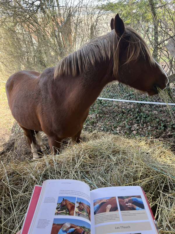 | Dire merci | Quinoa a trouvé la bardane ![]() ![]() C’est marrant son toupet a vraiment gardé une texture de crins de poulain tout doux et fin. Bon on a réussi à s’en sortir sans couper, ouf ! Sakr est un peu relou. Bon déjà il bosse pas, les jours rallongent et je pense que mon compagnon qui lui amène l’eau le laisse un peu déborder côté espace/bulle, ca doit lui donner des idées. Je me replonge dans les bouquins de VSV et de Corbigny, ça fait du bien comme de toute façon je ne vais pas remonter tt de suite.. ! Je me rends compte que je ne dois manquer de précisions dans certaines demandes d’ailleurs, et que je ne vais pas au bout des choses. il marche trop vite pour qu’on aille se balader à pied, j’ai vraiment plus de cardio ![]() J’ai récupéré des fiches d’equifeel mais sans m’inscrire au concours virtuel. J aurai eu une vidéo à poster par mois jusqu’en Juin mais en pondant en Avril je sais pas si j’aurai pu tenir le rythme en m’investissant suffisamment. |