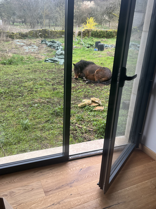 | Dire merci | La vie suit tranquillement son cours ici, faire des clôtures à la fin des 8 mois de grossesse ça prend un temps de dingue heureusement le sol est mou et les petites bêtes sont contentes d’avoir de l’herbe verte !Je me sens quand même moins à l’aise et réactive pour le travail à pied alors on se contente de bouquiner ![]() L’aménagement de la maison à bien avancé, le jardin de devant va suivre, en attendant les chevaux en profite, Quinoa vient faire la sieste devant la chambre, elle devait rêver d’un super truc à manger parce que son bout de nez s’agitait ![]() ![]() Et puis la nature qui se réveille ça fait du bien |