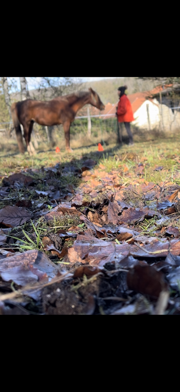 | Dire merci | Motivée par le petit rayon de soleil je me suis dit qu’on allait rattaquer le travail à pied avec Sakr ![]() Déjà je suis ravie du matos brockamp qui a pu être mis à l’épreuve suite à nos quelques désaccords ![]() On a pu revoir les distances et l’immobilité, il m’a épaté lui qui peut facilement être pot de colle. Pour le déplacement de hanches il faut que je sois vigilante, déjà la zone où je travaille est en légère pente donc il faut que je demande quand il est dans le « bon sens » au moins au début, parce qu’il a tendance à ramener l’épaule sinon. Et meilleure mise à l’épreuve de l’immobilité, le seau de grain, il a été parfait Maintenant va falloir qu’on bosse un peu régulièrement et que je sois plus précise dans mes demandes aussi. J’avais filmé mais mauvais cadrage et téléphone a fini par tomber ![]() ![]() Et pour rester dans les photos flous ![]() ![]() |