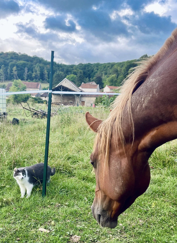 | Dire merci | Pour répondre tardivement à ta question ça va, on se fait à l’absence de ceux qui ne sont plus là. Ma grand mère nous a quitté en Octobre, je réalise la chance immense que j’ai eu de grandir à 200m de chez eux et avec Quinoa revenue sous mes fenêtres, je revis une partie de mon enfance par vagues, comme a l époque où elle était chez eux. En ce moment c’est petit épisode de fourbure qui a été pris à temps (pas fait l’an dernier, je me suis moins méfiée… erreur comme dirait Pierre bellemare) donc on alterne paddock foin et panier au pré. Elle a boité 2 jours et regalope comme une pouliche, pourvu que ça dur ! De mon côté je me suis enfin remise en selle « sérieusement ». Après la grossesse, la demuscu ++, la gestion du bébé et la culpabilité à pas m’en occuper quand j’étais dispo (c’est papa qui garde en semaine), incendie à la maison j’ai dû retrouver une selle et puis enfin j’ai sauté le pas. Petit flip quand même comme Sakr n’avait pas été monté depuis quasi 1 an et demi mais bon j’ai sellé on est parti en balade comme si on était sorti la veille. Il est incroyable pour ça, Quino est pareil cela dit. On sort 2 -3 h tranquillou au pas histoire de se remuscler gentiment tous les 2. Quel plaisir de profiter de l’extérieur à cheval au printemps, ça m’avait vraiment manqué ! Bon quand je vois les bornes que tu avales en 3 h irisetquiara39 j ai un peu honte on est plutôt à 17km en 3h mais pour sa défense 700m de D+ et les pertes de temps sur les chemins bouchés (ou moi qui me trompe et il faut faire demi tour ). |