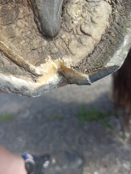| Dire merci | lony (et tout le monde en fait, si ça vous évoque quelque chose) La bizarrerie sur le pied de gauche, en pince du postérieur gauche. Je n'ai aps pensé à prendre la paroi en photo, mais il y a une seime qui part de là (on voit le "croc" dans la paroi) et qui était présente bien avant la boule vu que l'an passé j'ai soigné une fourmilière sur ce pied à cet endroit. Tout était nickel normal il y a encore peu. Oui la paroi est longue, chez Cawr ça pousse à une vitesse record : c'est déjà comme ça 7 jours post parage. Le parage date du 20 mai si je ne m'abuse, dans ces eaux-là en tout cas. ![]() |