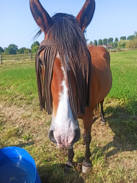 | Dire merci | Mon premier poney était un dartmoor, vraiment super sympa. en revanche, je n'ai que des mauvais souvenirs, ou des souvenirs très remuants avec des New Forest (juste mon expérience) Mais oui, la race en vrai peu importe, faut surtout du sain et fiable. Quitte à poster, anecdote à la con du jour. J'avais un rdv vers 16h, donc je n'ai pas posé à l'écurie, mais surtout, comme c'était sur la route, j'étais déjà bien habillé. Je donne les seaux, je fais des grattes grattes de loin... et bien sûr une fois fini Grimm vient essuyer son nez plein de grumeaux sur mon beau t-shirt noir On va dire que ça donnait un genre, et j'ai majoritairement parlé les bras croisés pour masquer un peu tout ça |
