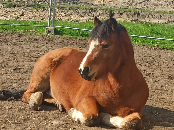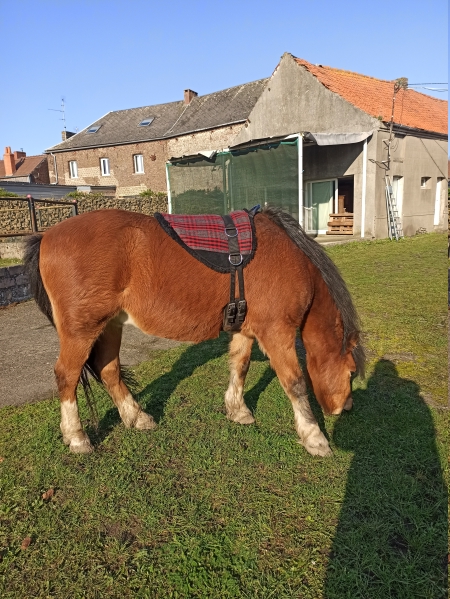 | Dire merci | Hello tout le monde ! Depuis le temps, un petit post de présentation de ma troupe me paraît judicieux. Vous allez vite voir que : 1. Je suis nase en photos 2. Je suis mal équipé en plus. 3. J’en prends rarement. Mais bon, j’ai envie de vous parler de ma troupe, et aussi de tenir un journal en quelque sorte vue que ma (notre, avec ma mère) spécialité est de récupérer des laissées pour compte, des moches, des vieux, des cassés. Ça vaut son pesant de cacahuètes en matière de prise de tête et de galères, mais aussi de grandes joies. Bref, la suite au post suivant. C’est qu’il y a du monde quand même ! Comme je vais détailler pas mal, je résumé ici ma clique : Neigeoux, Linda et Chicco : Trois poneys retraités dont le boulot est d’avoir la belle vie. Arrivés dans ma vie en 2001, 2013 et 2014, et nés en 1986, 1993 et 1979 (ou 80). Mon formidable Neigeoux nous a quittés le 22/06/2022, et mon gentil Chicco le 5/12/2023. Linda a rejoint Coco le 14/01/25 V.Ron : le belge, paint horse gentil neuneu, de 2007, pré-retraite pour arthrose des jarrets, fait de la balade de temps en temps. Arrivé le 20 novembre 2015 Cawr : le gallois, poney Welsh Cob ultra flippé, de 2009. Majoritairement du travail à pied. Arrivé le 1er avril 2014 Baron : le bulgare, poney D ONC, de 2007, très gentil sous la selle, très spécial à pied. Le seul vraiment au travail qui ne soit ni un retraité, ni un sauvetage. Arrivé le 1er novembre 2016 Grimm : Arrivé le 15 avril 2019, soit pile poil le jour de ses 3 ans (né en 2016). Welsh B qui a tout à apprendre encore (photos en page 21) Brigand : 28 ans, pas à moi mais à une amie, compagnon de longue date (21 ans de vie commune !) à la retraite chez moi. (Mon gentil Bibi nous a quitté le 11/09/19) Message édité le 26/04/25 à 19:03 |