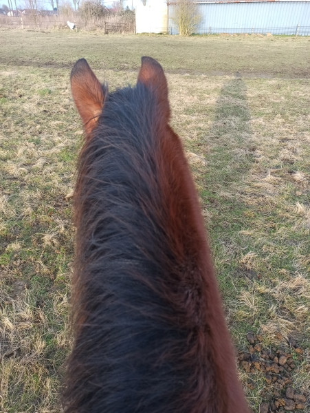 | Dire merci | erzebeth : j'ai obéi ![]() Alors ça a été séance minimaliste, mais j'ai profité du soleil caché. Les terrains sont vraiment pas top. Le temps de le préparer, sans s'éteindre complètement, il était assez figé et tendu, même si je lui ai proposé de brouter le temps de brosser. C'était non. Le pauvre en plus, j'ai dû tirer un peu pour réussir à sangler ![]() Puis je l'ai emmené en pâture, l'ai un peu longé au pas à chaque main. Quasi que du pas, à peine un quart de cercle de trot vu la gueule des terrains. Il s'est montré ultra appliqué. Je lui ai fait faire des petits tours pour le dérider, ça a eu l'air d'avoir un petit peu d'effet. Puis zou, je suis monté dessus. Ce qui m'a fait hurler de rire, c'est que je lui dis "t'inquiète, on ne fait qu'un petit tour" et il m'a pris au mot en faisant un genre de volte de 15 m J'ai monté 5 minutes peut-être, juste du pas tranquille. Et, enfin ! aucun écart, aucun démarrage en trombe. Il est toujours impeccable à tourner et s'arrêter au poids du corps, je n'ai jamais touché les rênes même s'il était en side. Puis je lui ai dit "je descends" alors il m'a ramené au tabouret et s'est bien garé pour que je descende Il est quand même resté tout le long très stressé tout rentré à l'intérieur, mais sans exploser. Puis je l'ai ramené dans la cour pour le déshabiller et une fois dessellé il a complètement décompressé, le dos qui s'effondre, la fesse bien molle. Je me dis qu'à coup de micro séances comme ça, on devrait finir par désamorcer cette anxiété massive. En tout cas, c'était tout simple, mais c'était bien cool, je suis vraiment content |