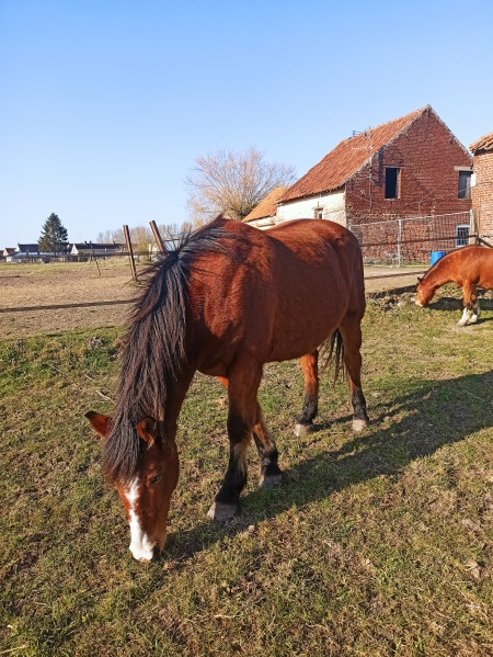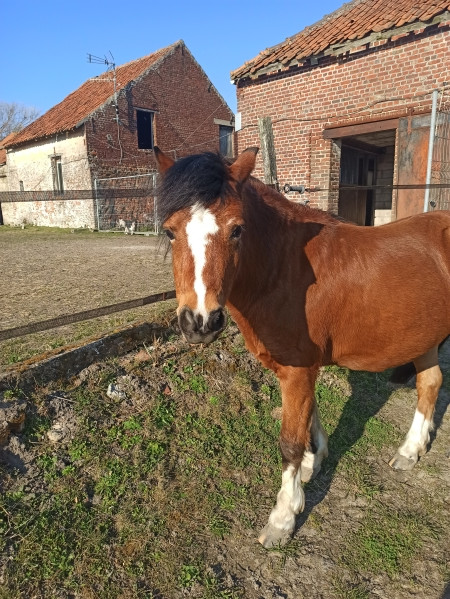 | Dire merci | Hello tout le monde ! Depuis le temps, un petit post de présentation de ma troupe me paraît judicieux. Vous allez vite voir que : 1. Je suis nase en photos 2. Je suis mal équipé en plus. 3. J’en prends rarement. Mais bon, j’ai envie de vous parler de ma troupe, et aussi de tenir un journal en quelque sorte vue que ma (notre, avec ma mère) spécialité est de récupérer des laissées pour compte, des moches, des vieux, des cassés. Ça vaut son pesant de cacahuètes en matière de prise de tête et de galères, mais aussi de grandes joies. Bref, la suite au post suivant. C’est qu’il y a du monde quand même ! Comme je vais détailler pas mal, je résumé ici ma clique : Neigeoux, Linda et Chicco : Trois poneys retraités dont le boulot est d’avoir la belle vie. Arrivés dans ma vie en 2001, 2013 et 2014, et nés en 1986, 1993 et 1979 (ou 80). Mon formidable Neigeoux nous a quittés le 22/06/2022, et mon gentil Chicco le 5/12/2023. Linda a rejoint Coco le 14/01/25 V.Ron : le belge, paint horse gentil neuneu, de 2007, pré-retraite pour arthrose des jarrets, fait de la balade de temps en temps. Arrivé le 20 novembre 2015 Cawr : le gallois, poney Welsh Cob ultra flippé, de 2009. Majoritairement du travail à pied. Arrivé le 1er avril 2014 Baron : le bulgare, poney D ONC, de 2007, très gentil sous la selle, très spécial à pied. Le seul vraiment au travail qui ne soit ni un retraité, ni un sauvetage. Arrivé le 1er novembre 2016 Grimm : Arrivé le 15 avril 2019, soit pile poil le jour de ses 3 ans (né en 2016). Welsh B qui a tout à apprendre encore (photos en page 21) Brigand : 28 ans, pas à moi mais à une amie, compagnon de longue date (21 ans de vie commune !) à la retraite chez moi. (Mon gentil Bibi nous a quitté le 11/09/19) Message édité le 26/04/25 à 19:03 |