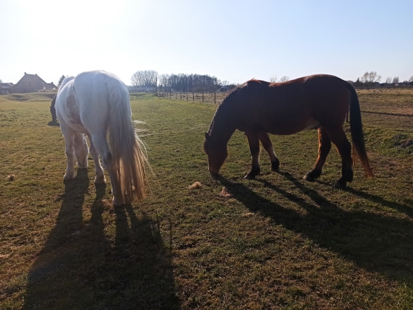 | Dire merci | eh ben ! j'allais louper les photos Moi je trouve V-Ron très chouette niveau poids ! Et le soleil, ça aide clairement la bonne humeur, même chez nos chevaux |