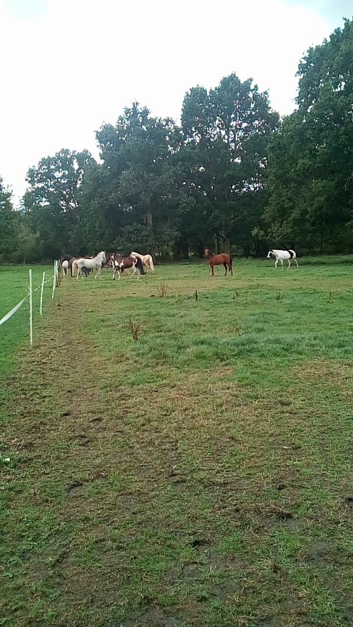 | Dire merci | Il est lààà! Tout maigrichon, et déjà tout égratigné après une nuit dans un troupeau où il se fait victimisé! ![]() Après 3h de route au lieu de 2, il est arrivé à 11h et mis directement dans le troupeau. Où il n'y a pas eu trop de soucis. Les autres n'ont pas trop fait attention à lui. On est revenu à 16h, il était tout seul dans un coin de la patûre, à attendre, sans manger, les autres chevaux à l'opposé. Je l'ai sorti un peu pour lui donner une ration et ça été une vraie galère pour le rentrer. Impossible de le faire avancer, planter des 4 pieds. Il ne m'avait jamais fait ça J'ai le seul cheval qui ne veut pas aller en patûre Aujourd'hui, j'arrive, et là je le vois tout seul dans une autre pature (collait à celle d'hier), donc je me dis qu'il a sauté, je me vois déjà dans une grosse galère (il avait eu une lubie où il sautait toutes les clôtures chez mes parents, et le jour où je l'ai retiré de mon ancienne pension, il avait sauté le matin même). Bon finalement, le troupeau est au bout de cette même pature. Ils ont été changé de pré ce matin! On est allé faire un tour en forêt, à pieds, avec mon homme et ma fille, c'était vraiment agréable! Il n'avait déjà plus les mêmes yeux qu'hier! Je crois qu'il va vite comprendre qu'il a tout pour être heureux! J'aimerais y retourner demain, pour au moins mettre quelque chose sur sa plaie (sur le dos ), mais j'ai ma fille et vu la disposition des patures et/ou le nombre de chevaux dans le troupeau, ça me semble vraiment compliqué de l'emmener! Je vais y réfléchir demain et on verra pour y aller en fin d'après midi! |