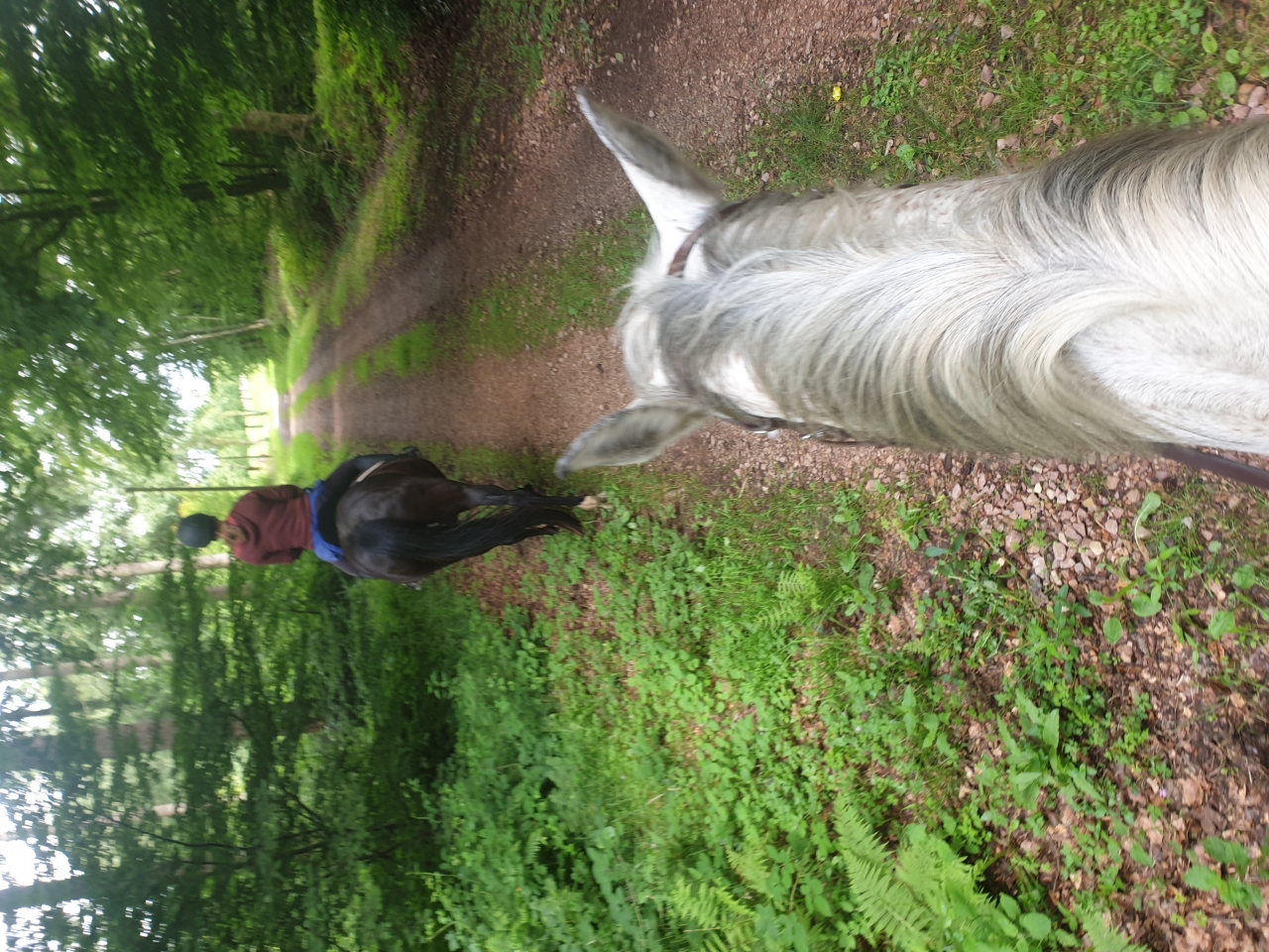 | Dire merci | ![]() Hier on a fait désensibilisation, histoire de le faire un peu chier la bâche ça va mais alors cette histoire pour un sac plastique.... Et après balade avec les grosses ! ![]() Chacha cheval de tête, un vrai cheval de chasse même passe partout, hystérique à trottiner tout du long |