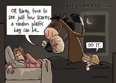 | Dire merci | Il a l’air bien dodu en effet Le cheval de ma cousine qui n’a peut de rien fait aussi tout un cirque avec le sac plastique … sauf avec des carottes dedans ![]() |