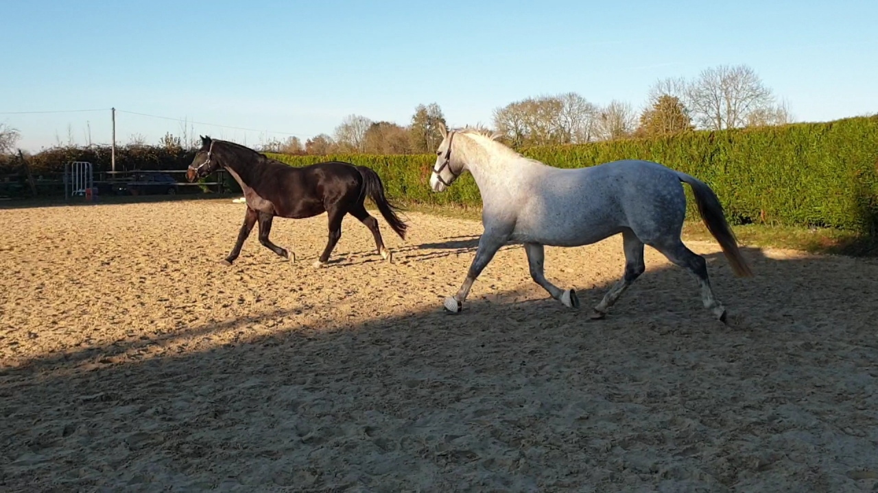 | Dire merci | Bon je suis en train de plancher sur quelle reprise pourrait le mieux convenir à ma poulette grise démoniaque (ouaip d'ici fin d'hiver elle sera ready je pense ).On a encore des problèmes pour partir sur le bon pied au galop à droite, elle part systématiquement à faux, en longe ou montée, sauf du pas et sauf avec mon ancienne coach mais qui la cadrait +++ dans les aides quand elle l'avait montée, mais je n'ai pas envie de me battre avec elle là dedans donc on va encore bosser ça. Il faudrait des départs du pas, peu de lignes droites, beaucoup de cercles. Elle maîtrise pas mal le galop à faux aussi. Je pensais la club 2 GP du coup mais il reste les cessions au trot à bosser, elle sait faire mais dans la décontraction elle a du mal donc on arrive vite à se battre ![]() |