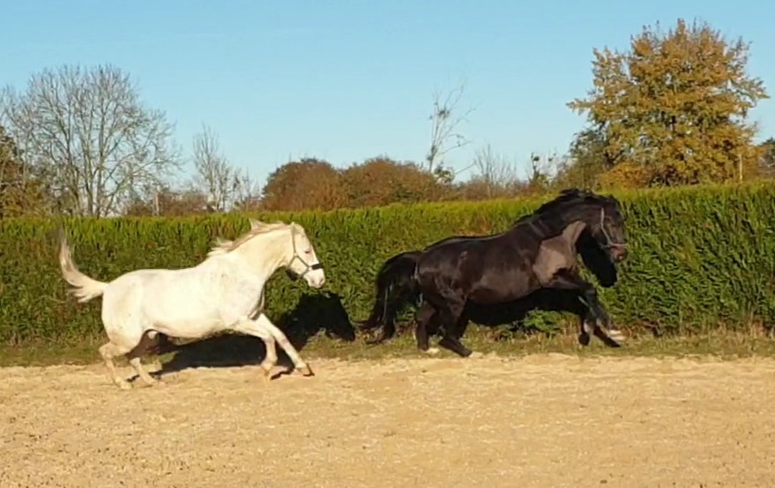 | Dire merci | Ah ce nain quand il s'y met il travaille vraiment bien ! Il a vraiment changé d'attitude en six mois le galop s'est beaucoup amélioré et il saute très bien maintenant, le trot aussi et l'attitude pareil Bon évidemment il a un pilote sur le dos aka ma coach Hier boulot en longe avec Lili, on a bougé le plot qui sert de montoir parce qu'il gênait ma trajectoire de longe.... Panique à bord...: "le plot il a bougé et maintenant y'a un gros carré au sol dessiné c'est terrible on va crever je REFUSE de passer par là !" Et comme elle déteste tous les changements de sol et qu'elle réagit exactement pareil sur des barres enterrées.... on va peut être la coller direct sur 1m qui sait |
