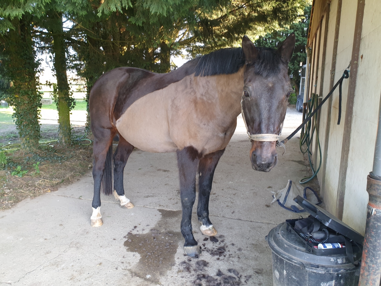 | Dire merci | C'est surtout qu'on est passé brutalement du froid au chaud. Ca, les vieux ont plus de mal à encaisser. Surtout avec du gros poil d'hiver. Bon, Belline ne transpire quand même pas, elle a beaucoup d'arabe, faut y aller pour la faire transpirer. mais elle n'aime pas ça. Sherpa par contre, il aurait transpiré hier. C'est aussi une question de métabolisme, il transpirait très vite et très fort, il a toujours été comme ça. |