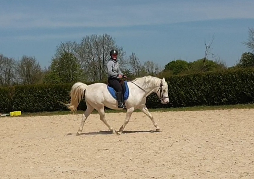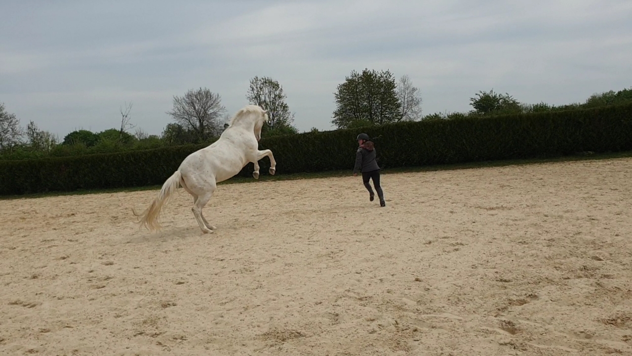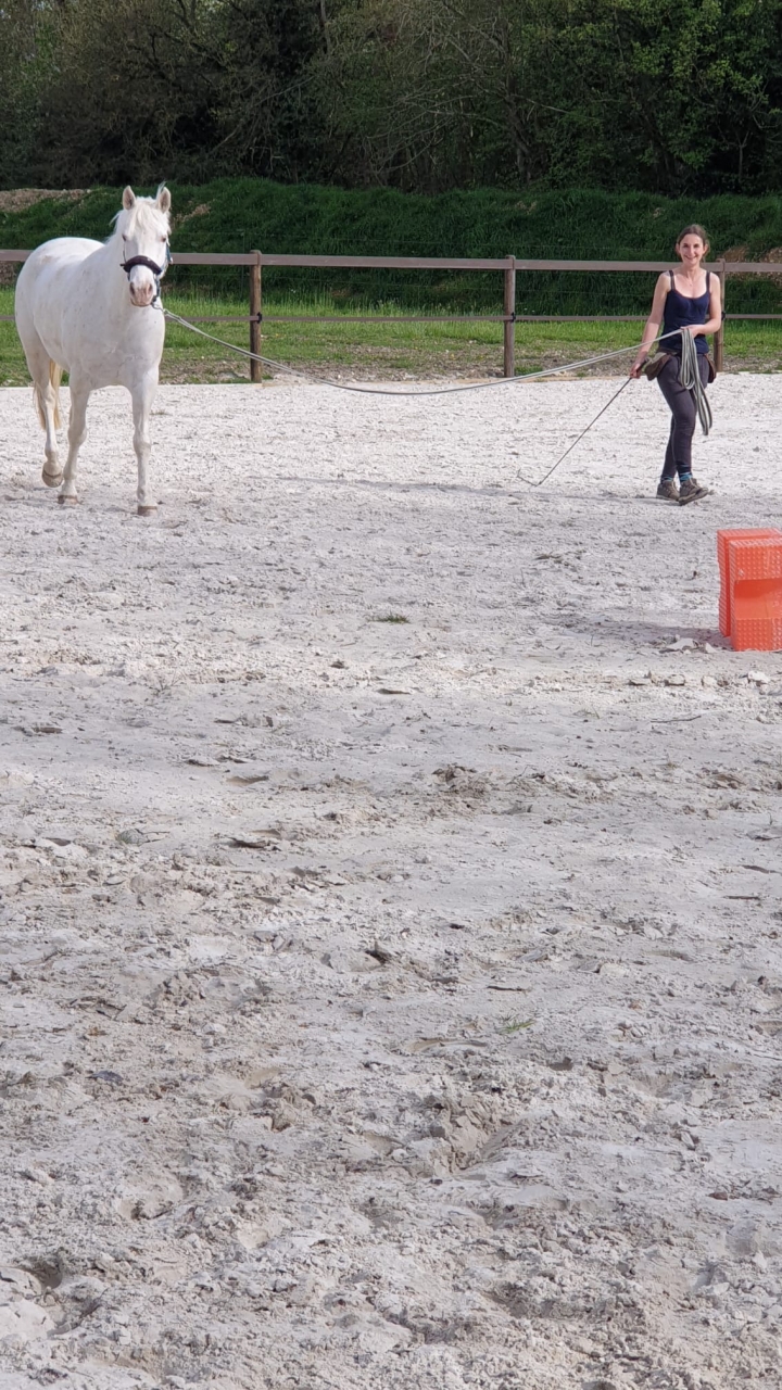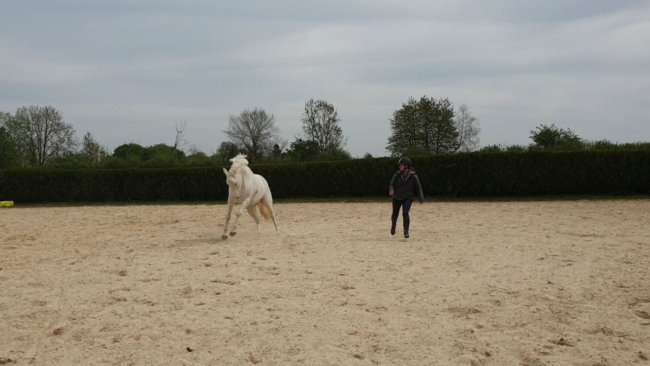 | Dire merci | Tu peux un peu détailler ton travail? J'avoue ne pas avoir tout suivi. J'ai l'impression que tu cherches la décontraction, mais finalement sans sollicitation? Quel est le but? Je veux dire, la jument sait se décontracter seule au pré? Si oui c'est la décontraction au boulot que l'on souhaite? Mais du coup là elle semble plutôt posée au milieu de la carrière... normal qu'elle s'endorme non? Je ne vois pas le rôle du cavalier dans l'histoire et donc le gain pour le couple, j'ai loupé un wagon... |