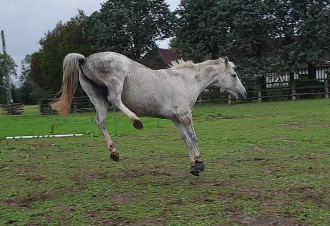 Il avait fait gentiment de la longe tous les derniers jours en ligne droite aux trois allures tranquillement, aujourd'hui on devait faire un peu de carrière et que je donne les boutons à la cavalière... On détend au pas chacune sur son cheval tranquille, il part au petit trot elle veut l'arrêter il n'écoute rien bim il a balancé des petits coups de dos jusqu'à la déposer, c'était pas violent mais vilaine chute je suis encore aux urgences avec elle .... Honnetement je ne sais pas ce que je vais en faire. Pour moi c'est impardonnable de commencer à faire ça alors qu'on ne lui demande rien... |