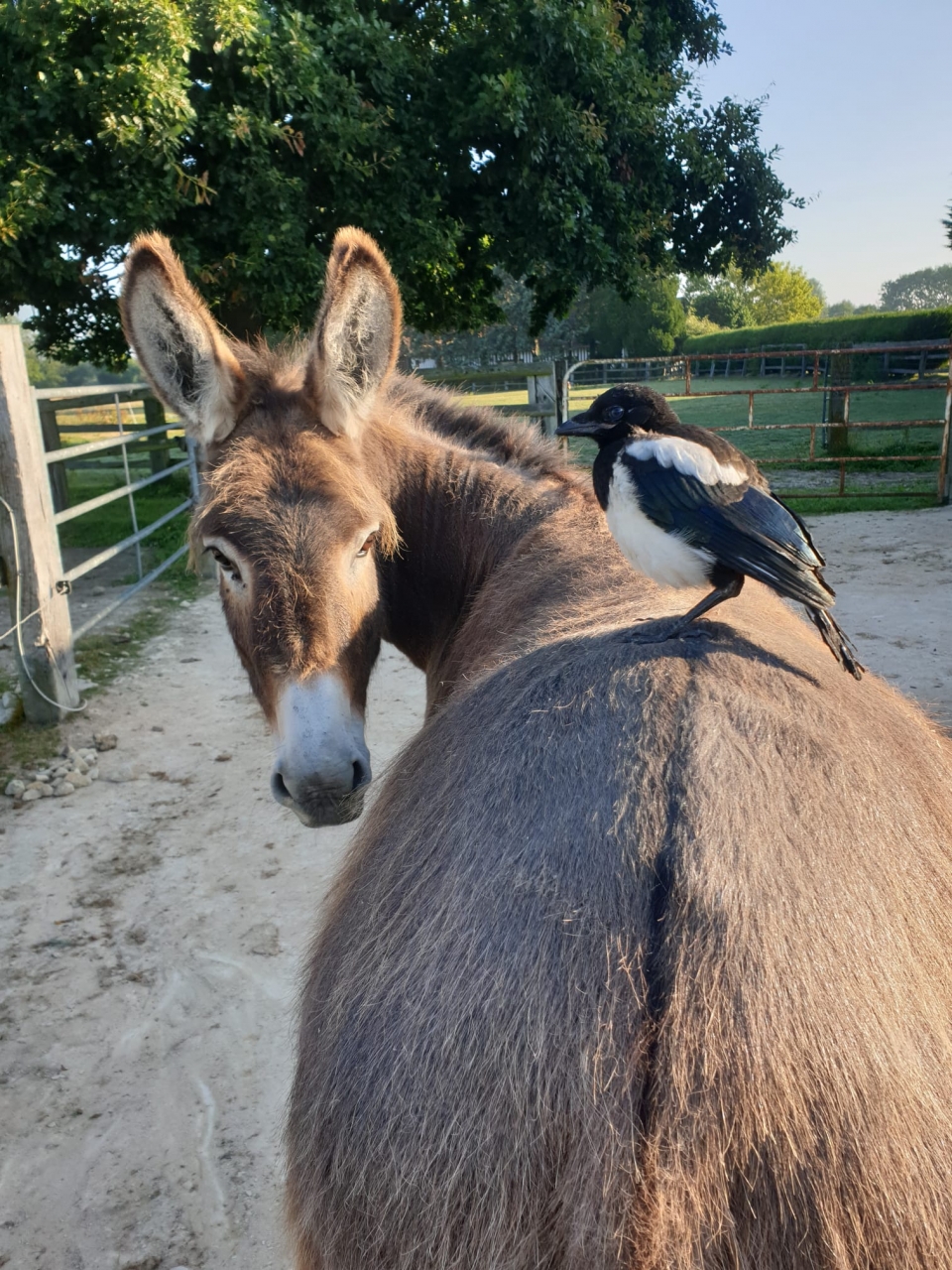 | Dire merci | Je pense que personne ne le savait ici mais à mon ancienne écurie, un de mes chats m'avait ramené un bébé pie en 2021... Je l'avais élevé moi même et c'était mon "chien" entre gros guillemets elle m'a quittée samedi dernier... idem ça a été très dur aussi.... On ne peut pas se rendre compte de la relation qu'on peut tisser avec un oiseau surtout un corvidé en fait. C'est indescriptible. |