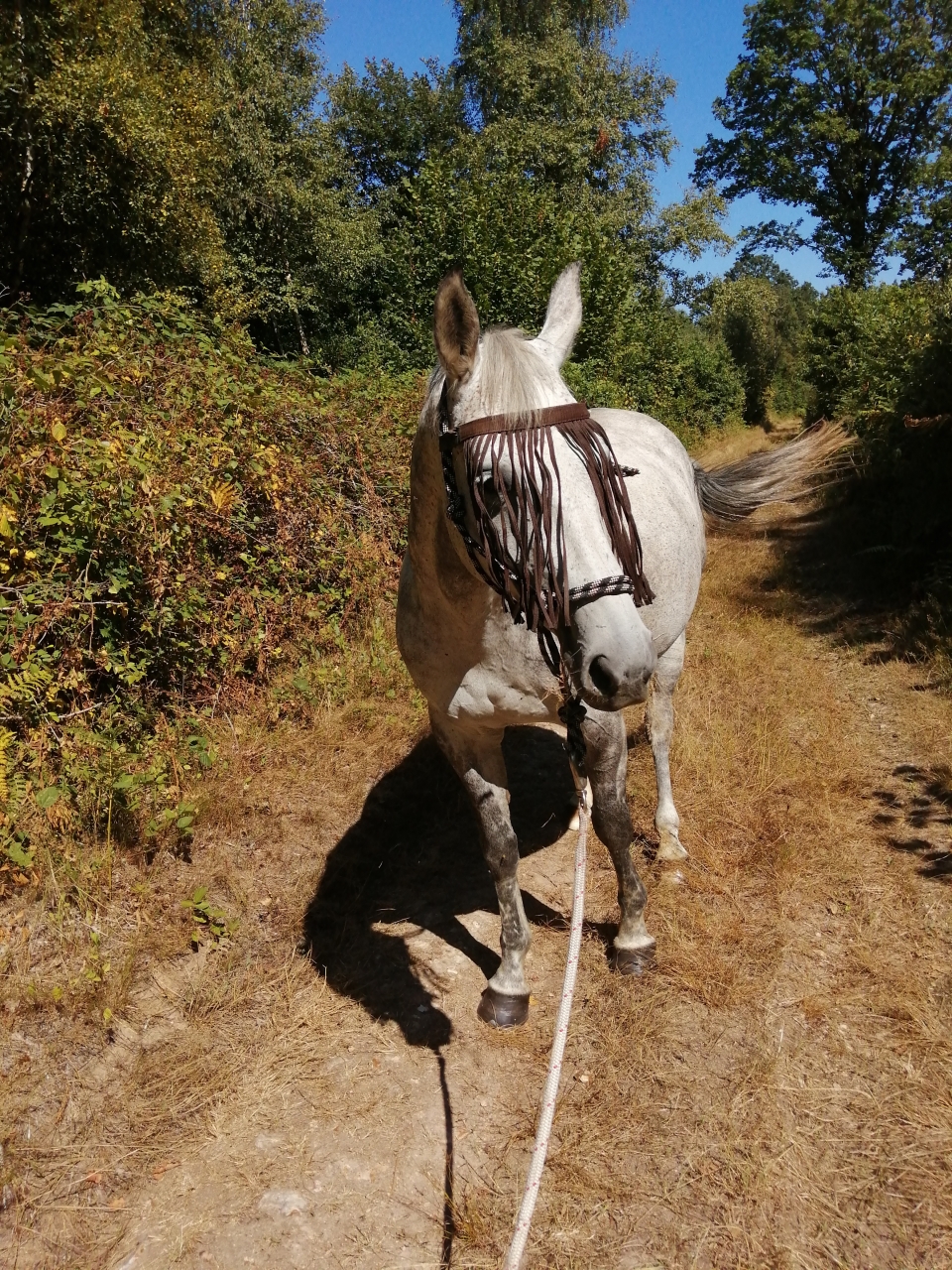 | Dire merci | Pas de trop de nouvelles ici depuis quelques temps on est un peu débordés J'ai repris le boulot avec Cha-cha, j'ai ENFIN appris ma reprise de dressage et j'engage en septembre, novembre et peut être octobre mais le gros souci c'est que le concours que je vise est le lendemain de mon mariage remarque monter bourrée ça peut être un challenge ![]() Lili progresse bien, j'ai découvert malgré moi qu'elle détestait les prises de longe (en mode débile complete ) mais on travaillera dessus gentiment.On va attaquer le boulot au galop, le pas est bien maintenant, le trot plus cadencé même si elle reste très perchée et que je n'arrive pas à la faire se tendre et descendre, déjà elle ne s'enferme plus du tout ! Maintenant reste à ce qu'elle accepte le contact avec le mors Gandy a fait ses premiers pas en grande balade seul dehors il a été exemplaire ! enfin à peine sorti du pré il a fallu recadrer le Nain parce que ça commençait à se mettre debout alors qu'on avait pas quitté les écuries mais finalement une fois dehors, au top ! La curiosité prend toujours le pas sur la peur, il s'arrête pour regarder toute chose bizarre, puis s'approche et sent donc c'est vraiment parfait, il a même fait des bisous à une vache ![]() |