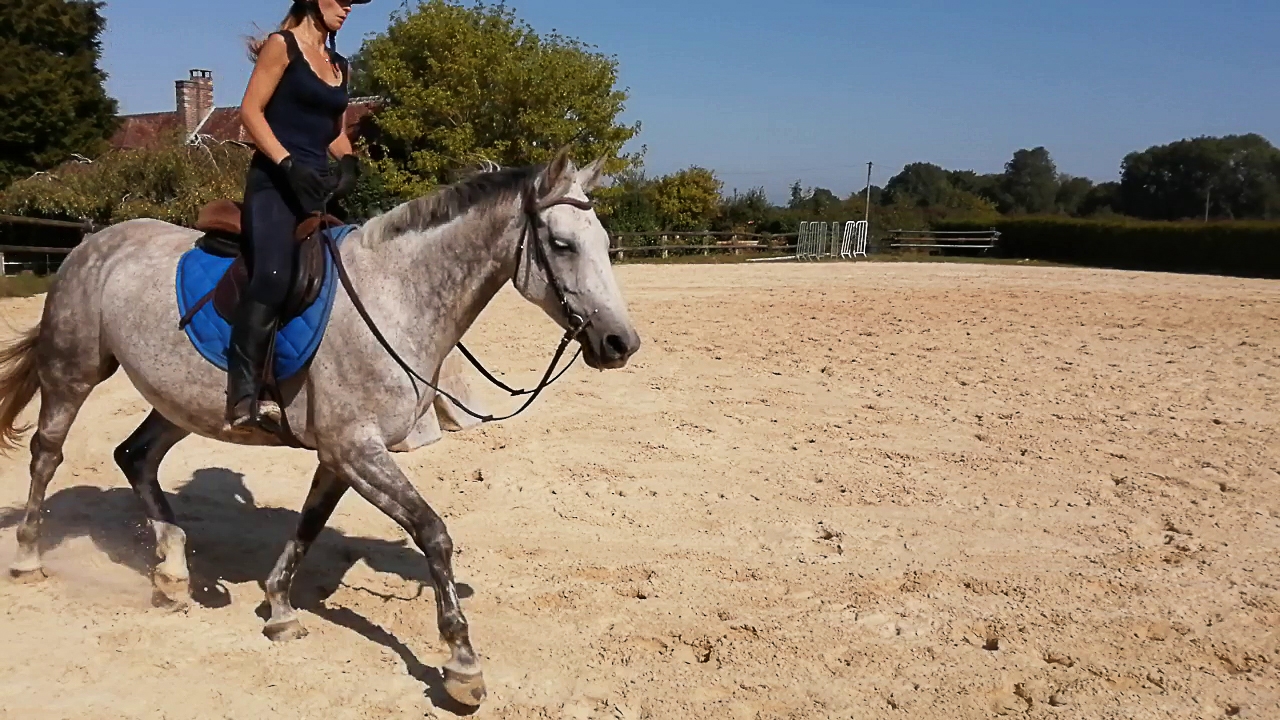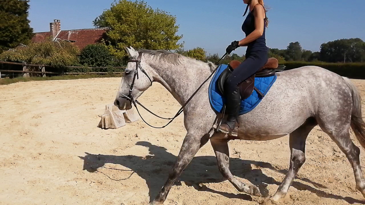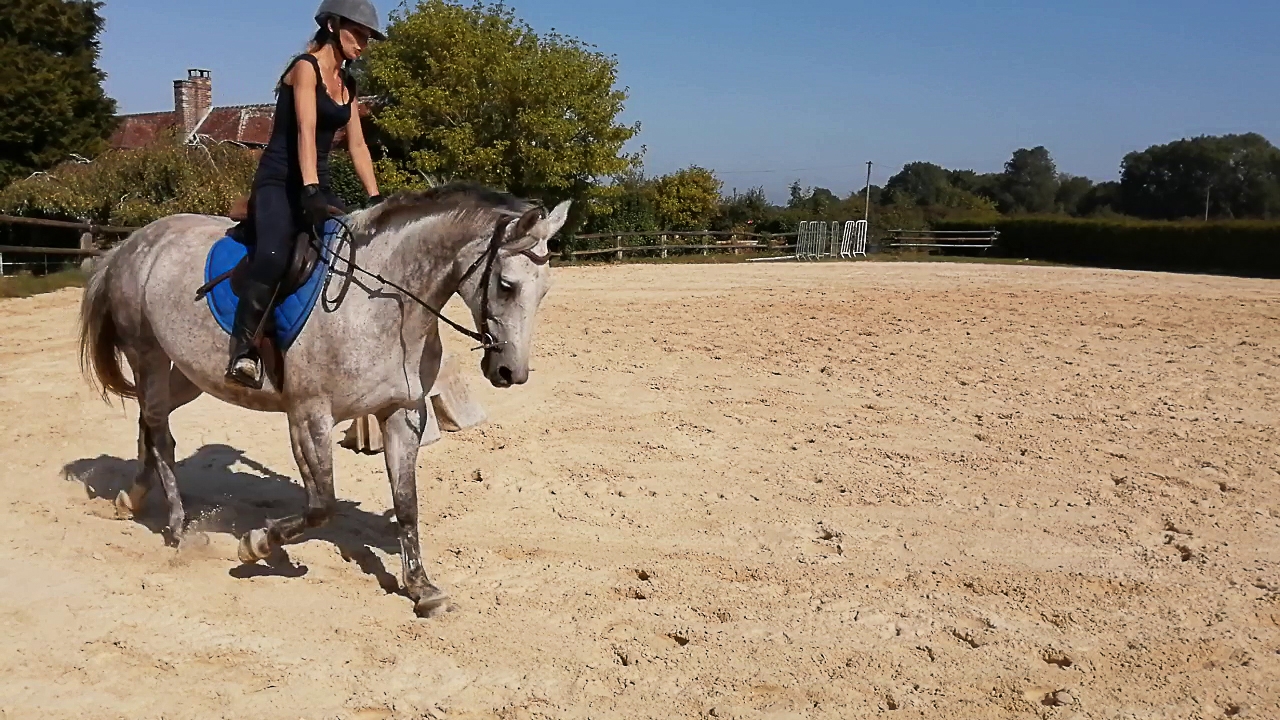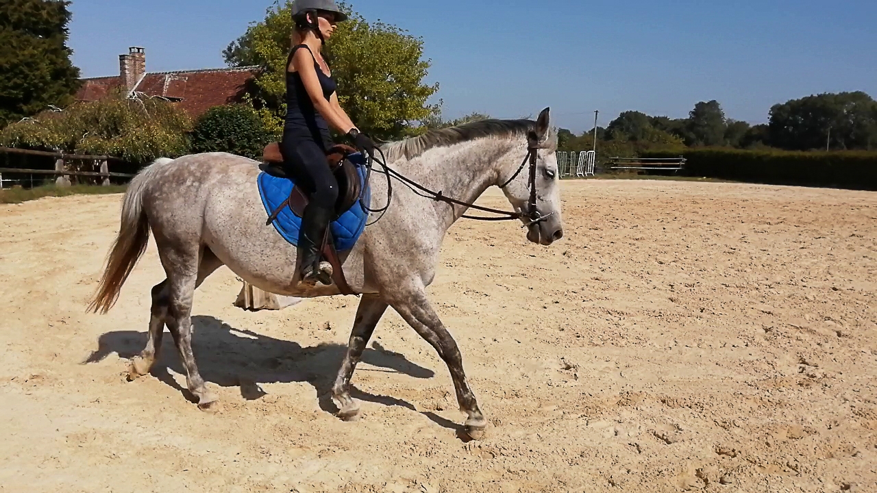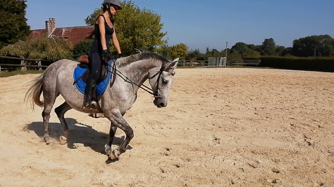 | Dire merci | La vidéo (longue... 6 minutes ) charge je vais la mettre après.Au pas elle descend l'encolure en mode LDR mais trop ronde à mon goût, elle s'enroule en fait, et ne le fait jamais avec un contact franc, elle ne vient pas tirer le bout du nez vers l'avant, ça reste toujours vers le bas voire vers les genoux, pas à l'horizontale je veux dire. Si c'était pas clair |