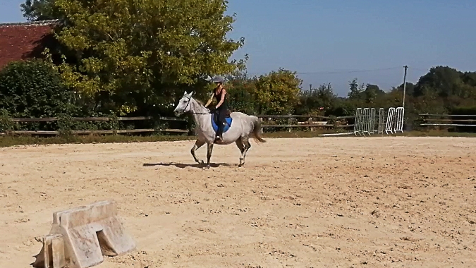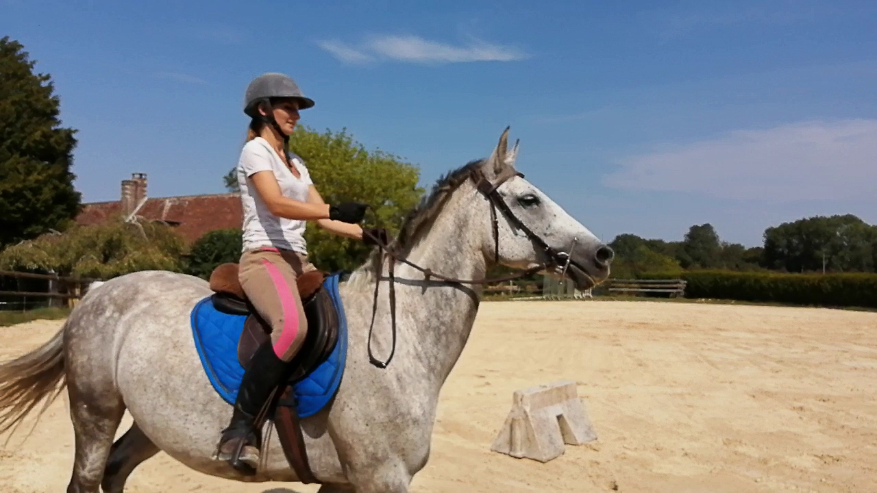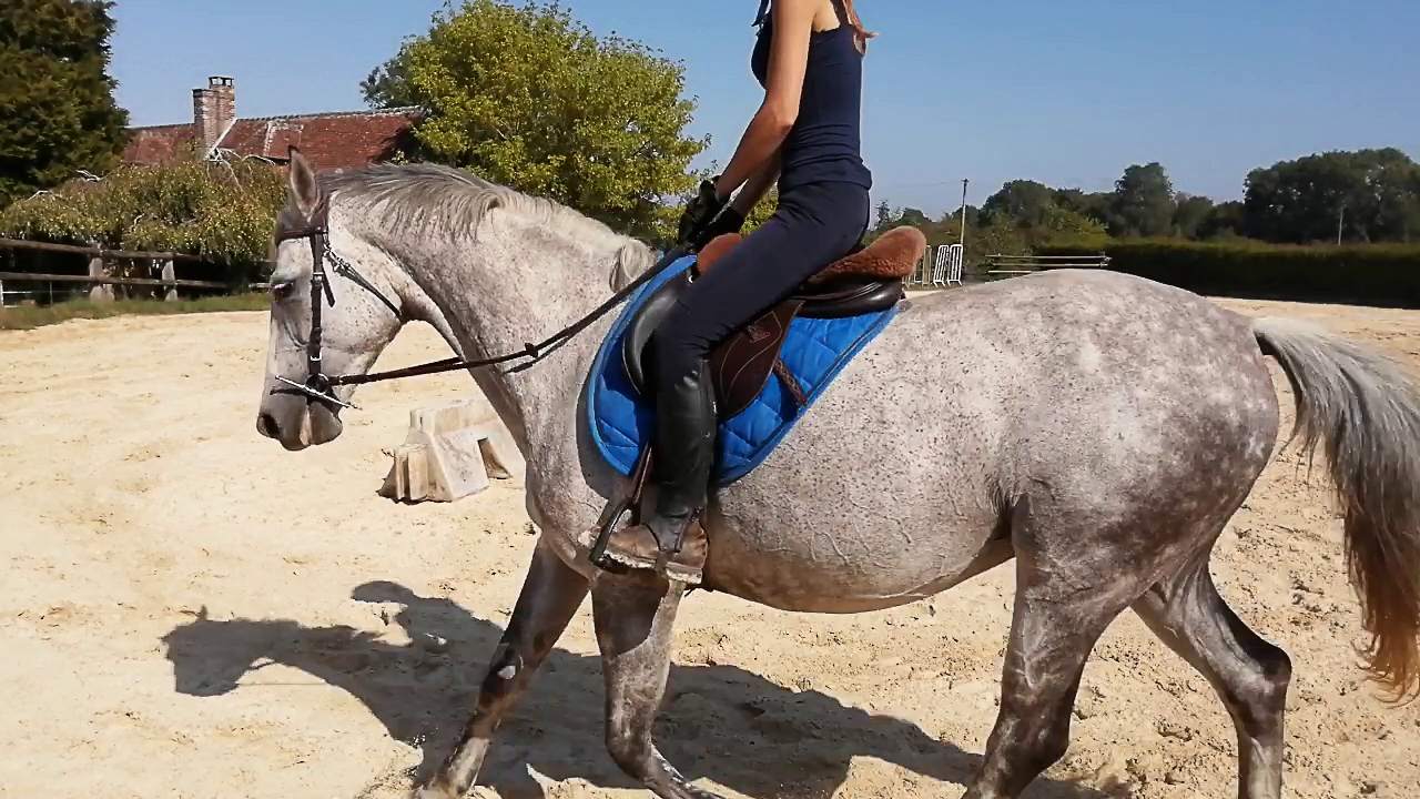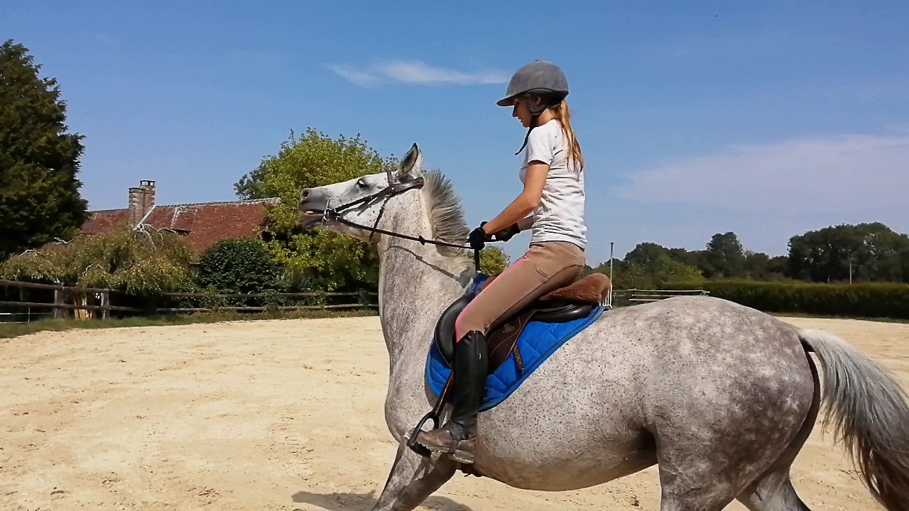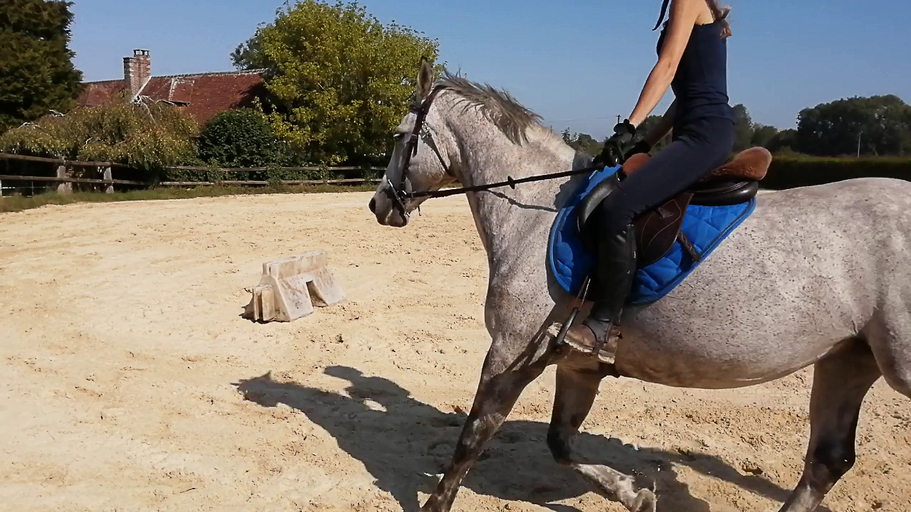 | Dire merci | La seconde au trot : Effectivement Xynou tu as totalement raison, d'ailleurs avoir une main liante ça a toujours été mon plus gros défaut. Encore plus quand le cheval secoue la tête ou s'agite, je n'arrive pas à suivre ou alors j'ai dix trains de retard... je vais essayer les mains en avant, je voulais surtout les avoir fixes et qui accompagnent le plus possibles mais elle bat tellement qu'effectivement elle se prend des taquets |