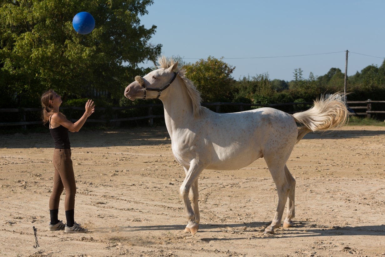 | Dire merci | Ensuite j'ai sorti Poulinou mon Poulinou d'amour dont je suis gaga totalement Le pauvre, la grosse a changé d'amoureux, maintenant c'est le petit poney du coup il se fait chasser par elle et l'autre lui casse pas mal les pieds, il joue assez violemment et Poulinou ne le recadre pas trop donc il a plein de blessures de guerre partout comme m'a dit la propriétaire du poney "ils l'ont pas loupé!" oui merci je sais ![]() Première fois travail à pied en "liberté", avant je le bossais avec la longe, et il a été super, ultra connecté directement! Bon, un peu focus sur la récompense mais il répondait bien quand même...Déplacement des hanches, pas stressé j'augmentais dans la demande il s'en battait le steak ![]() ![]() ![]() ![]() "Donne moi à manger, donne moi à manger, donne moi à manger" ![]() ![]() Il comprend les ordres au stick en fonction de comment je me place/tapote, j'aimerai y associer une commande vocale mais je n'arrive pas à m'organiser dans mes demandes hormis le "recule" évidemment... Ensuite je lui ai présenté un ballon ![]() Il s'en tamponnait le coquillard ![]() ![]() "Mais qu'est-ce qu'elle fait l'humaine elle est trop bizarre!" ![]() "Non moi je préfère courser les chats les chiens les chèvres et les canards c'est plus mieux!" ![]() ![]() Voilà vraiment mignon, il comprend parfaitement le "ta place" = à droite en arrière de moi, il y revient tout seul d'ailleurs, dans l'espoir d'avoir un bonbon certainement Et hier je le regardais faire le cake dans son pré, il a pour une fois bien mieux développé son galop derrière.... Au lieu de taper du postérieur comme un chevreuil ![]() Donc à voir ce que ça va donner tout ça. En revanche au pansage quand je passe ma main juste posée sur le dos, à partir des lombaires il rentre sa queue et se contracte, serre les fesses. Donc je pense qu'il doit avoir des douleurs mais qu'il ne s'écoute pas trop là-dessus car aucune réaction de plus. |