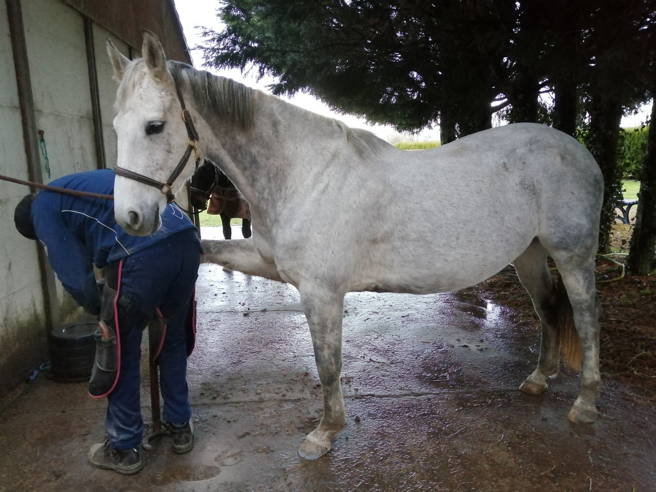 | Dire merci | Pareil, hier je suis partie avec Sherpa pendant une accalmie, mais on n'était pas partis depuis 15 min qu'il s'est mis à pleuvoir. Scène surréaliste quand même à un moment, quand il commençait à moins pleuvoir... j'étais trempée, et que suis arrivée chez l'agri qui doit me débarrasser de mon fumier... "Ah ben t'es courageuse, c'est pas trop un temps à faire du cheval!" Il était en train... de faire des grillades. |